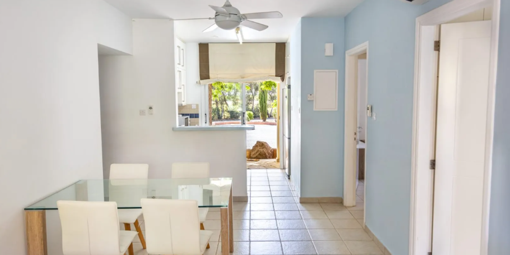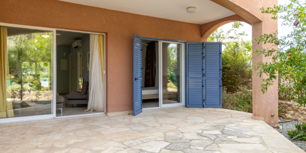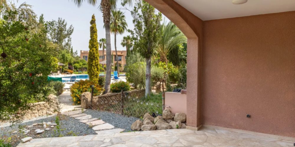 Residents have access to communal facilities including two shared swimming pools, one of which is heated during the winter. The development also features a private clubhouse reserved for residents. The finishes throughout the property reflect traditional local architectural elements and materials. The location provides convenient access to golf resorts, amenities, services, and is well-positioned between Paphos and Limassol.