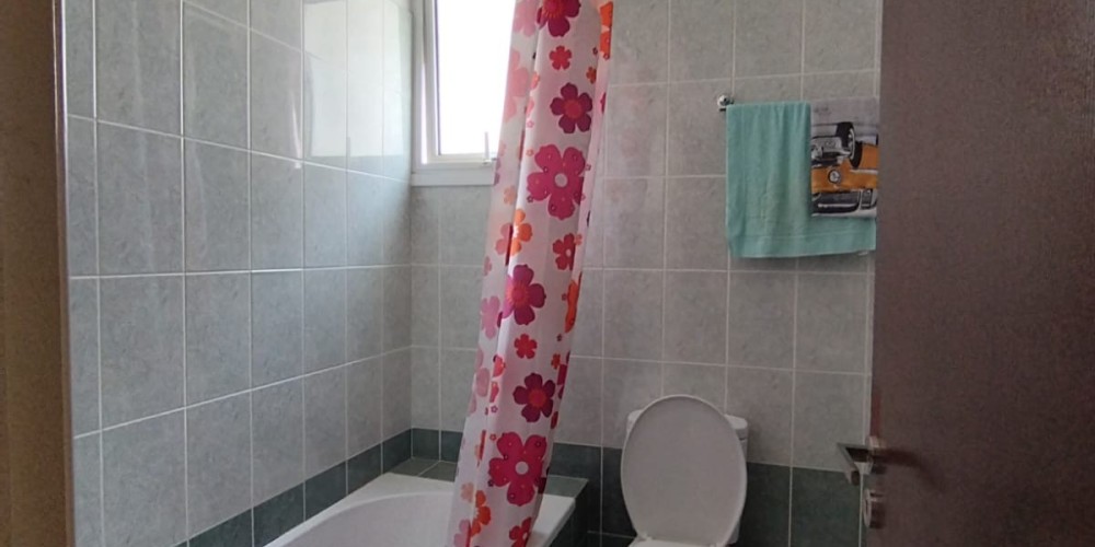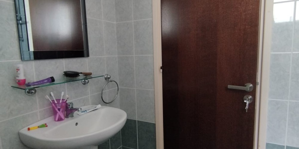 This 2-bedroom apartment is located in a quiet residential area of Livadia, just 1,200 meters from the sea. It is situated in a well-maintained building with an elevator and private parking.