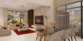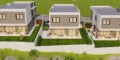 Each residence has a total covered area of 260 sq.m. on a plot of 364 sq.m. The layout includes four bedrooms, four WCs, a bathroom, two showers, an office, and a storage room. The houses are designed with modern infrastructure provisions and private outdoor areas, including space for a swimming pool.