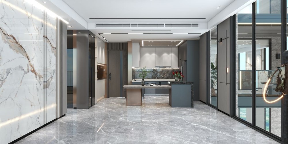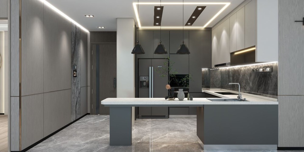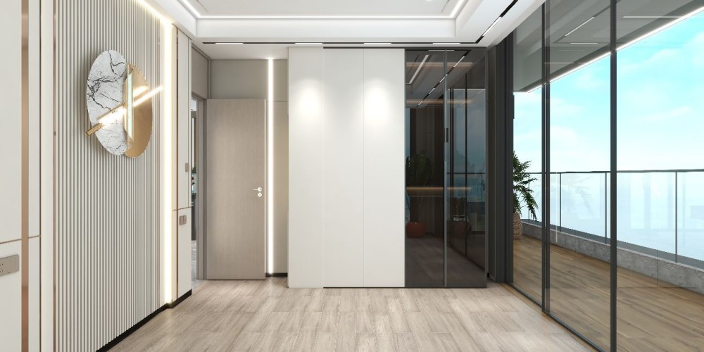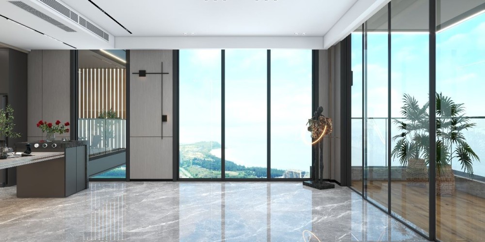 - High-end aluminum ceilings with integrated lighting in all living and bedroom areas