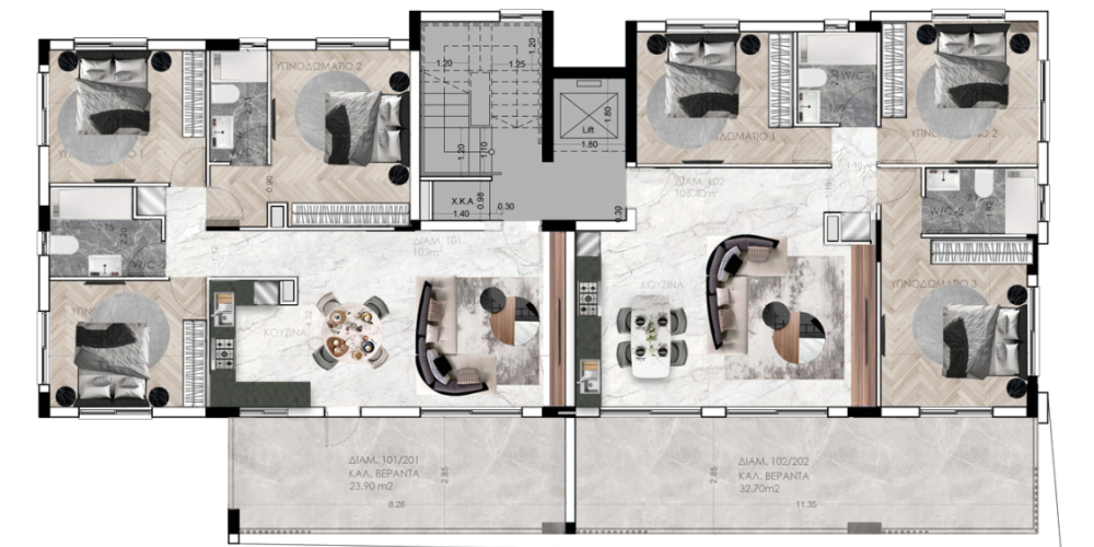 Located in one of Engomi’s most well-connected yet peaceful residential neighborhoods, this newly built apartment offers contemporary design and functional comfort across a low-rise three-floor building. The development comprises five apartments in total: four 3-bedroom residences and one 2-bedroom unit. Each floor accommodates two apartments, with the exception of the third floor, which is occupied by a single spacious residence.