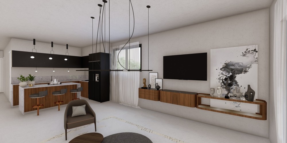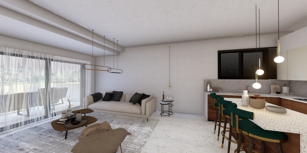 All units are designed with open-plan kitchens and are delivered unfurnished, allowing future residents to personalize their interiors. Each apartment is equipped with provisions for a 2.75 kW photovoltaic system, aimed at improving energy efficiency and reducing long-term electricity costs.