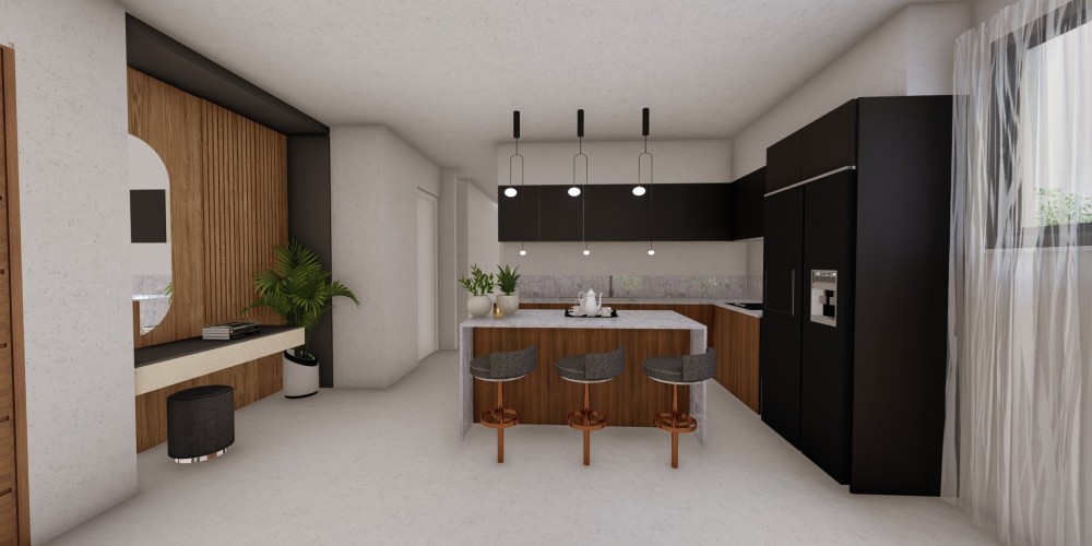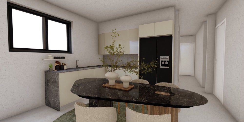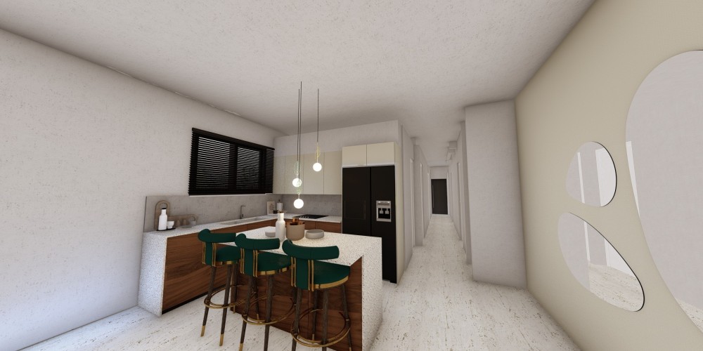 - Open-plan kitchen layout