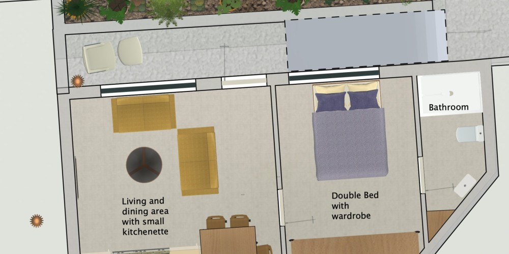 - Open-plan living, dining, and kitchen area with island and breakfast bar