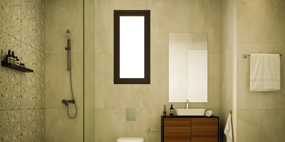 - Thermal aluminium window frames with double glazing