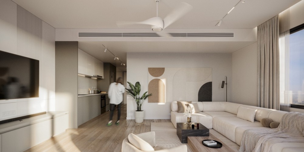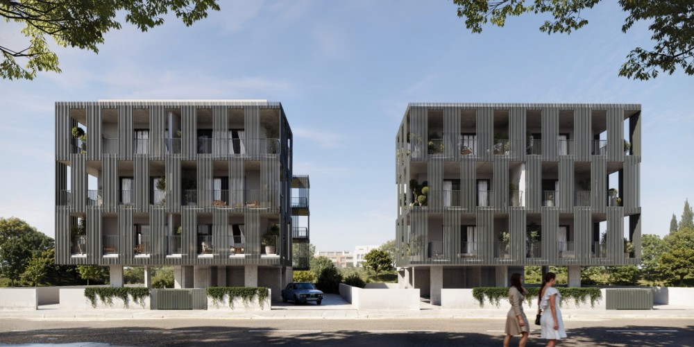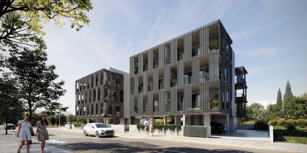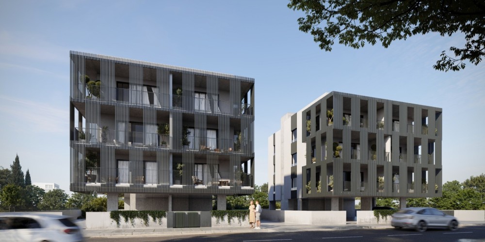 The exterior design of the building reflects a modern aesthetic with minimalist details. Inside, the focus is on simplicity and functionality. Shared access points include a communal entrance, an internal staircase, and a lift. The development also offers covered parking and provisions for air conditioning and photovoltaic panels.