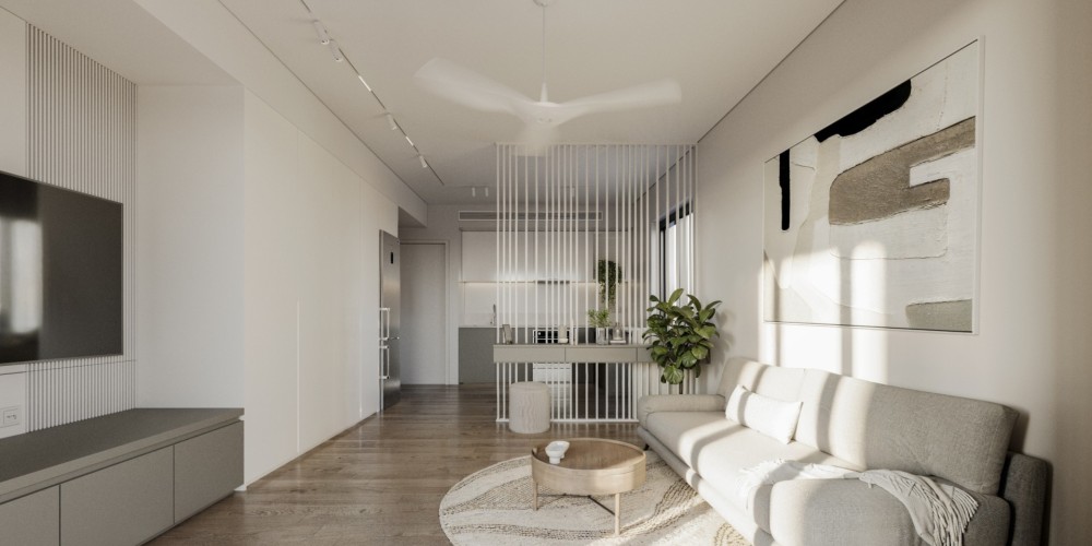 Each of the first two floors includes two one-bedroom apartments with an open-plan kitchen and living area, a full bathroom, and a private balcony. These units are designed to support everyday comfort, providing well-proportioned spaces for singles or couples.