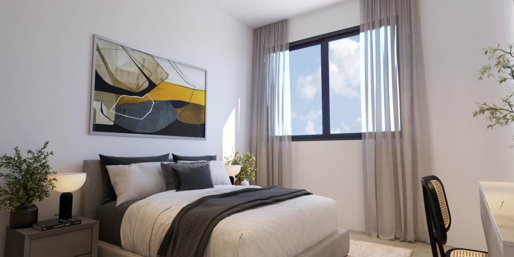 Each apartment features functional layouts, contemporary finishes, and access to private storage. Covered parking is available for all residents. The building is part of a gated complex and includes provisions for air conditioning, solar panels, and other modern systems.