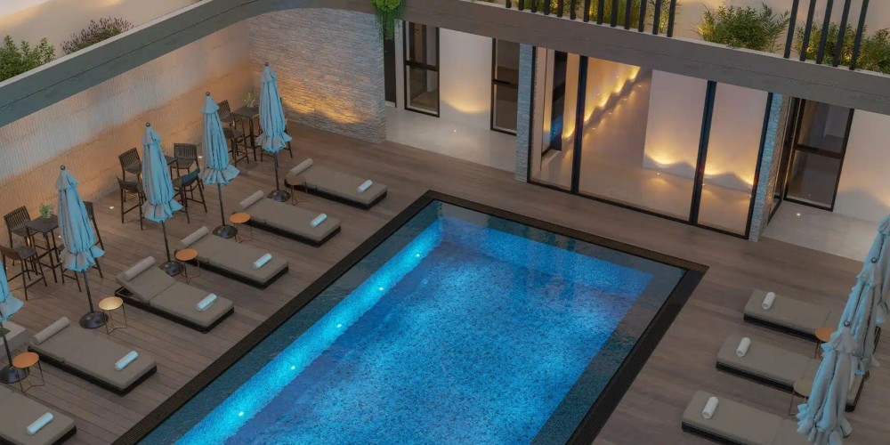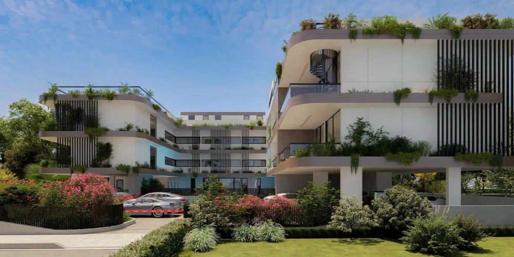 This residential development offers a selection of 22 thoughtfully planned apartments in a quiet neighborhood setting. Designed to meet a variety of living needs, the project includes one-, two-, and three-bedroom units, along with penthouses featuring a private roof garden. Each apartment includes a private storage room and access to shared amenities, including a common pool.