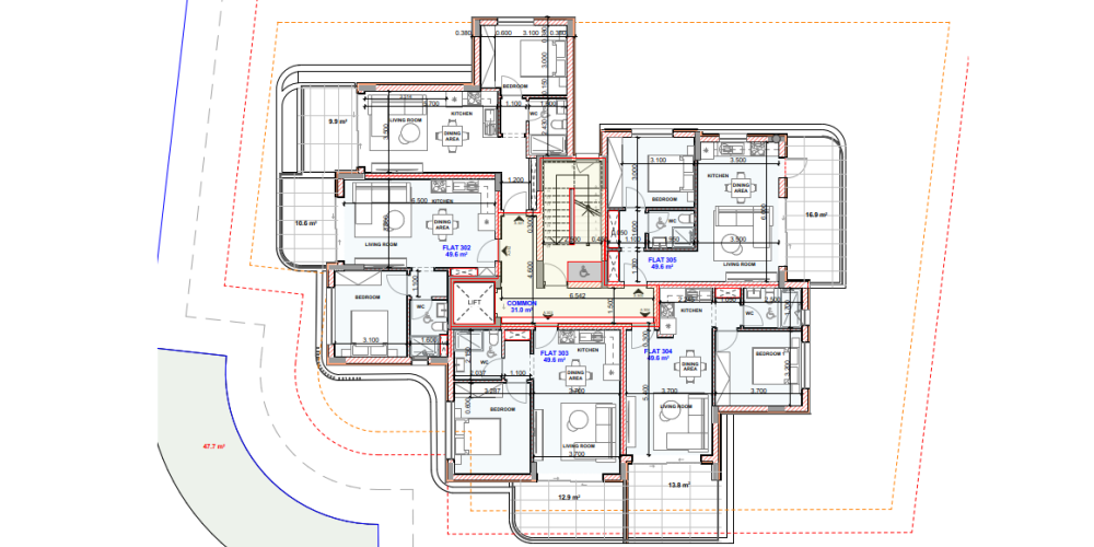 The building is located just 600 meters from the beach and within walking distance of the American University of Cyprus. The area combines residential calm with urban convenience, offering proximity to essential services and good connectivity to the rest of the city.