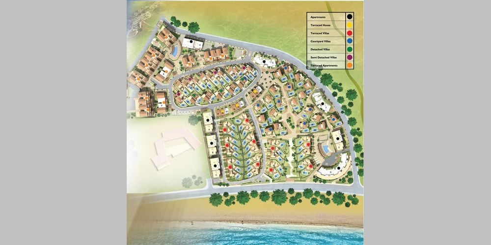 The complex comprising villas, townhouses and apartments is located eastwards of Limassol in a tourist area of the city. The Mediterranean and the beach are only 100 meters away from the complex. The beach was awarded the Blue Flag of perfect environment and cleanliness.