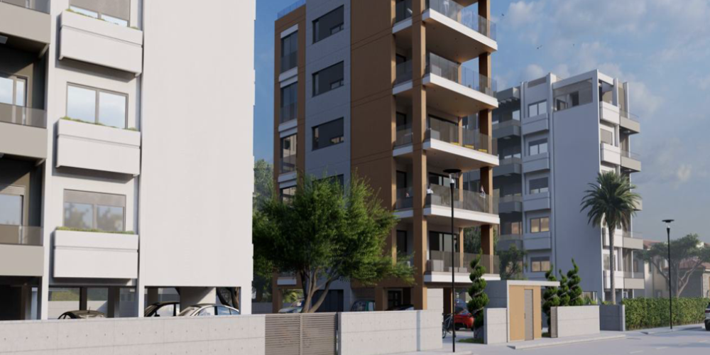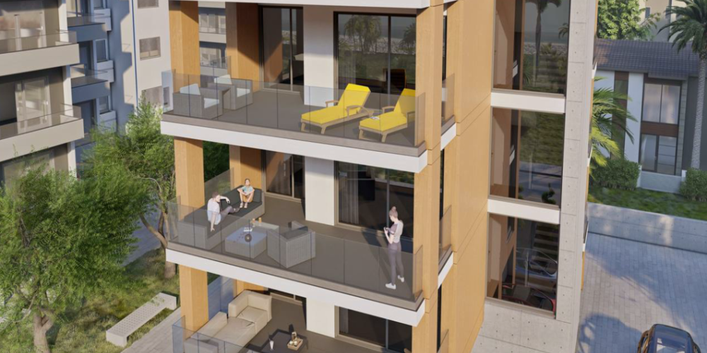 This five-storey residential building is located on Antinoros Street in Germasogeia, one of the most prestigious areas of Limassol. The project consists of five two-bedroom apartments — one apartment per floor. It features a distinctive architectural style that combines concrete finishes with natural wood tones, adding a modern character to the neighborhood.