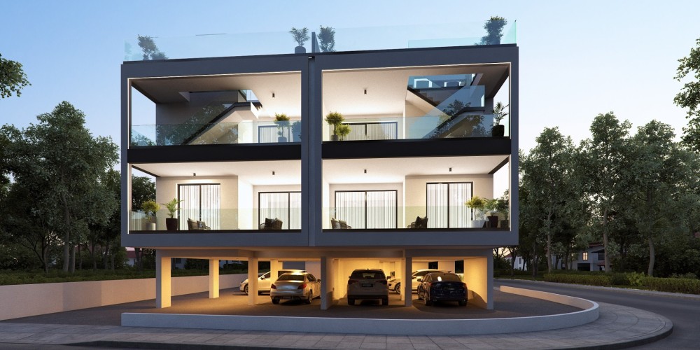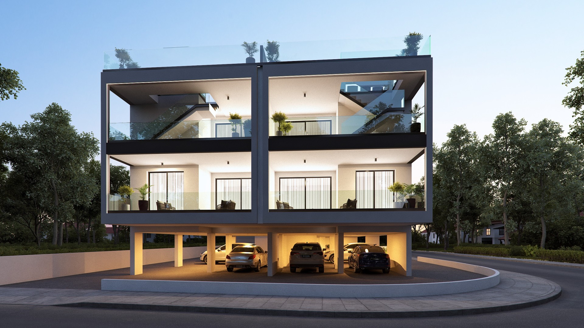 This residential project is located in the Aradippou area of Larnaca, within walking distance of Metropolis Mall. It offers 12 apartments — 8 with two bedrooms and 4 with one bedroom — all featuring spacious verandas, large windows, covered parking spaces, and private storage rooms. The penthouses include roof gardens. The location provides easy access to all local amenities, as well as to the Nicosia and Limassol highways.