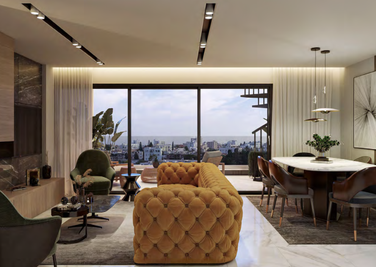 This modern three-storey residential building is located in one of the most desirable areas of Nicosia, directly opposite Acropolis Park. The project features spacious apartments with functional layouts and high-quality finishes. The available 3-bedroom apartment is fully completed and ready to move in. It includes two bathrooms, a large covered veranda overlooking the park, a covered parking space, and a storage room in the basement. The kitchen is equipped with BOSCH appliances, and heating panels from MILL can be controlled via mobile phone through Wi-Fi.