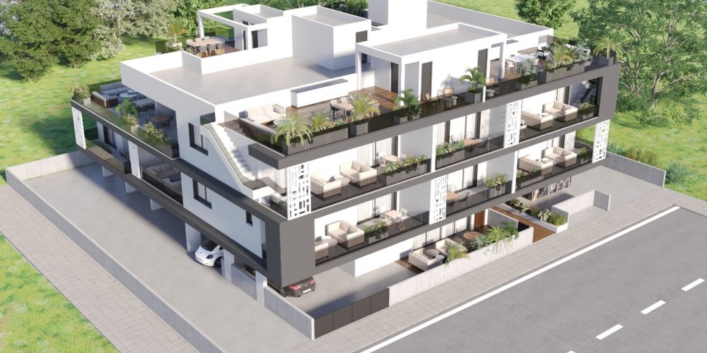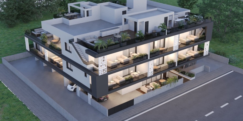 This residential community comprises 12 apartments across two adjacent plots, offering a combination of one, two, and three-bedroom layouts. Each apartment is designed for comfort, featuring spacious verandas, granite kitchen countertops, and private ensuite showers. The development is located in a quiet cul de sac, adjacent to a green park, while local amenities such as shops, restaurants, schools, Metropolis Mall, Larnaka center, and the beach are only minutes away. Covered parking and storage are provided for each apartment, with additional provisions for air-conditioning and electric car charging. Roof gardens are available for penthouses, adding an extra touch of modern living in this peaceful setting.