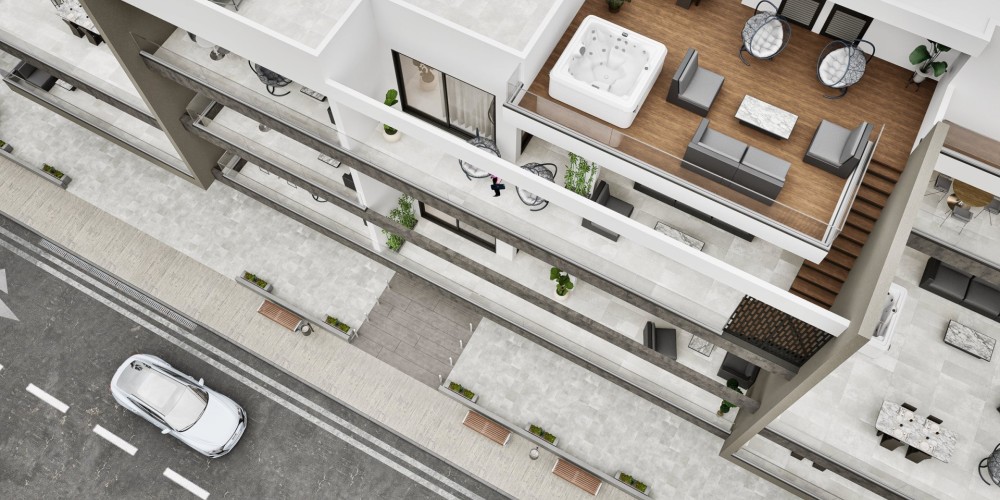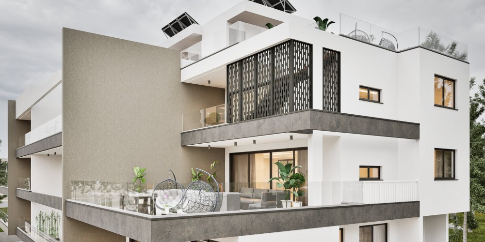 This residential development comprises 14 apartments across two adjacent plots, offering a selection of one and two-bedroom layouts. Each apartment is designed with comfort and functionality in mind, featuring spacious verandas, granite kitchen countertops, and ensuite walk-in showers. Penthouses include roof gardens, while all units come with private storage and covered parking. The development is located in a quiet residential neighborhood, adjacent to green parks, and is only minutes from Metropolis Mall, restaurants, supermarkets, schools, and essential local amenities. Larnaka city center and the beach are just 5 km away, with easy access to the Nicosia and Limassol highways. Provisions are included for air-conditioning and electric vehicle charging, and video intercom systems are installed in every apartment.