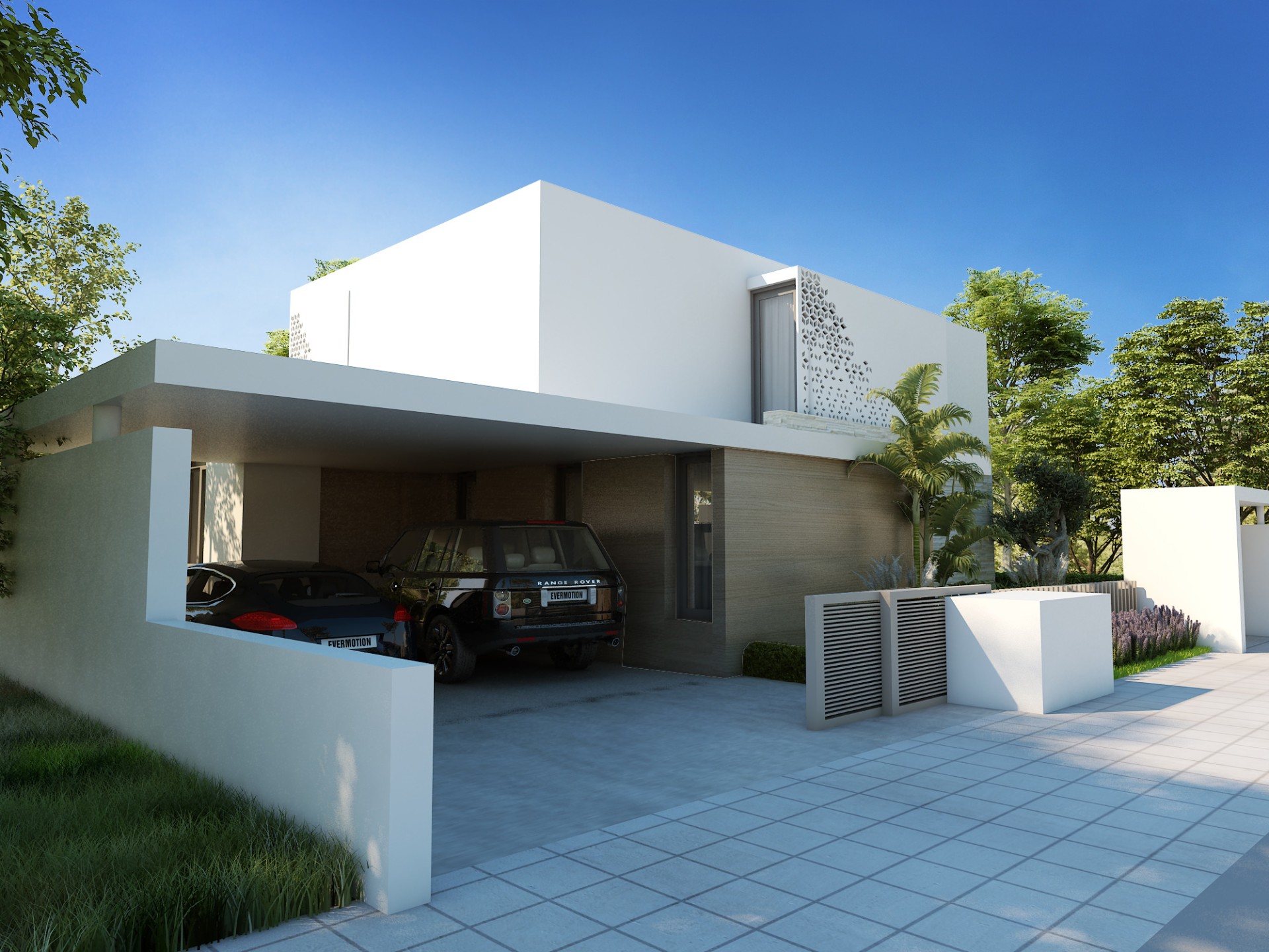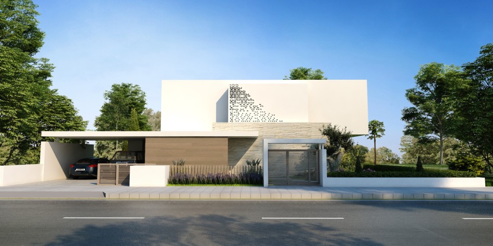 These deluxe villas blend contemporary Mediterranean style with a unique design and high-quality materials to create refined family homes. Set amid the greenery of Carolina Park on the outskirts of Nicosia, each residence features open-plan living that flows through floor-to-ceiling glass doors onto a covered terrace surrounded by water and planting. The villas include two living rooms, a laundry room, a detached personnel living apartment, and an outdoor barbecue and kitchen area; extensive glazing frames unobstructed views of the garden and private swimming pools.