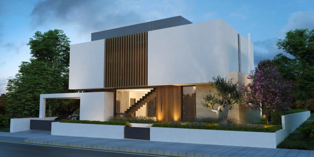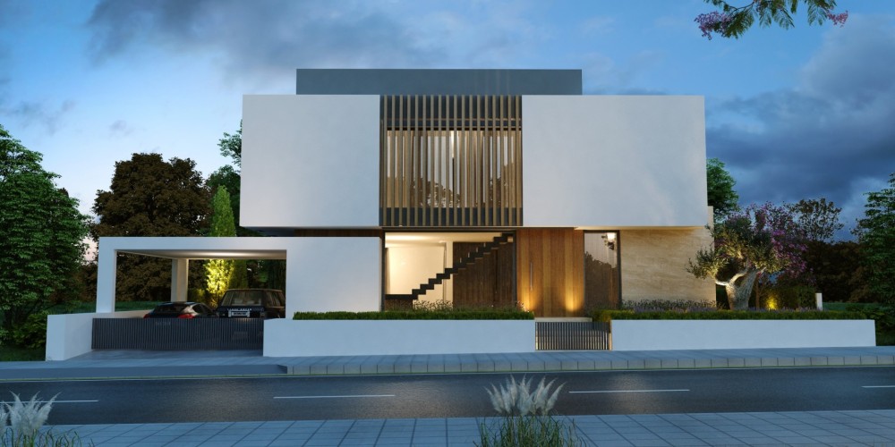This luxury villa, located on the outskirts of Nicosia in the peaceful Carolina Park area, combines a unique design with the highest-quality materials to create a refined family home. The residence features open-plan interiors with two living rooms, four bedrooms, a separate personnel bedroom, and spacious parking for two cars. Floor-to-ceiling glass doors open onto a covered terrace surrounded by water and greenery, offering unobstructed views of the garden and private swimming pool.