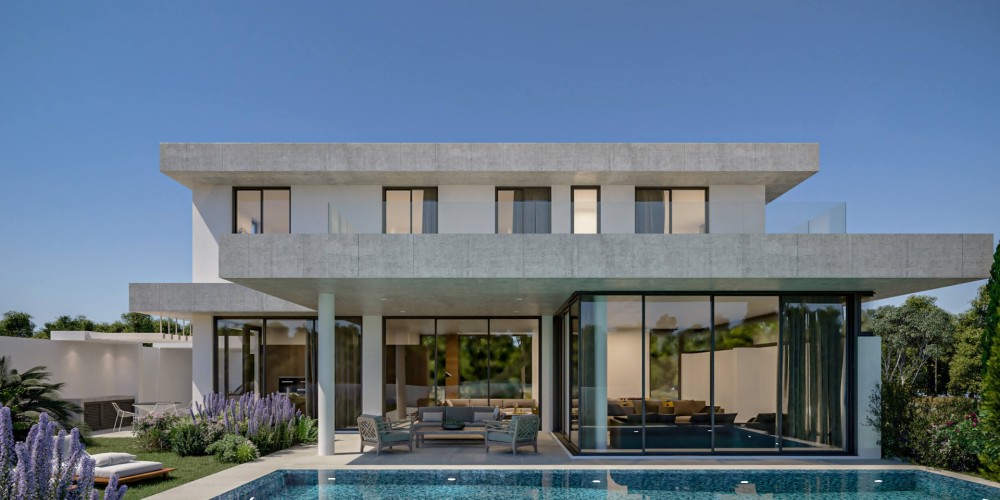 This elegant villa showcases a modern functionalist design, offering bright interiors and seamless connection with outdoor spaces. Panoramic windows frame serene garden views throughout the home, while the spacious covered veranda opens onto the swimming pool area and a dedicated barbecue zone with its own dining space — ideal for relaxed family living. Inside, the villa features four spacious bedrooms, three bathrooms, a guest toilet, and three comfortable living rooms with views of the greenery.