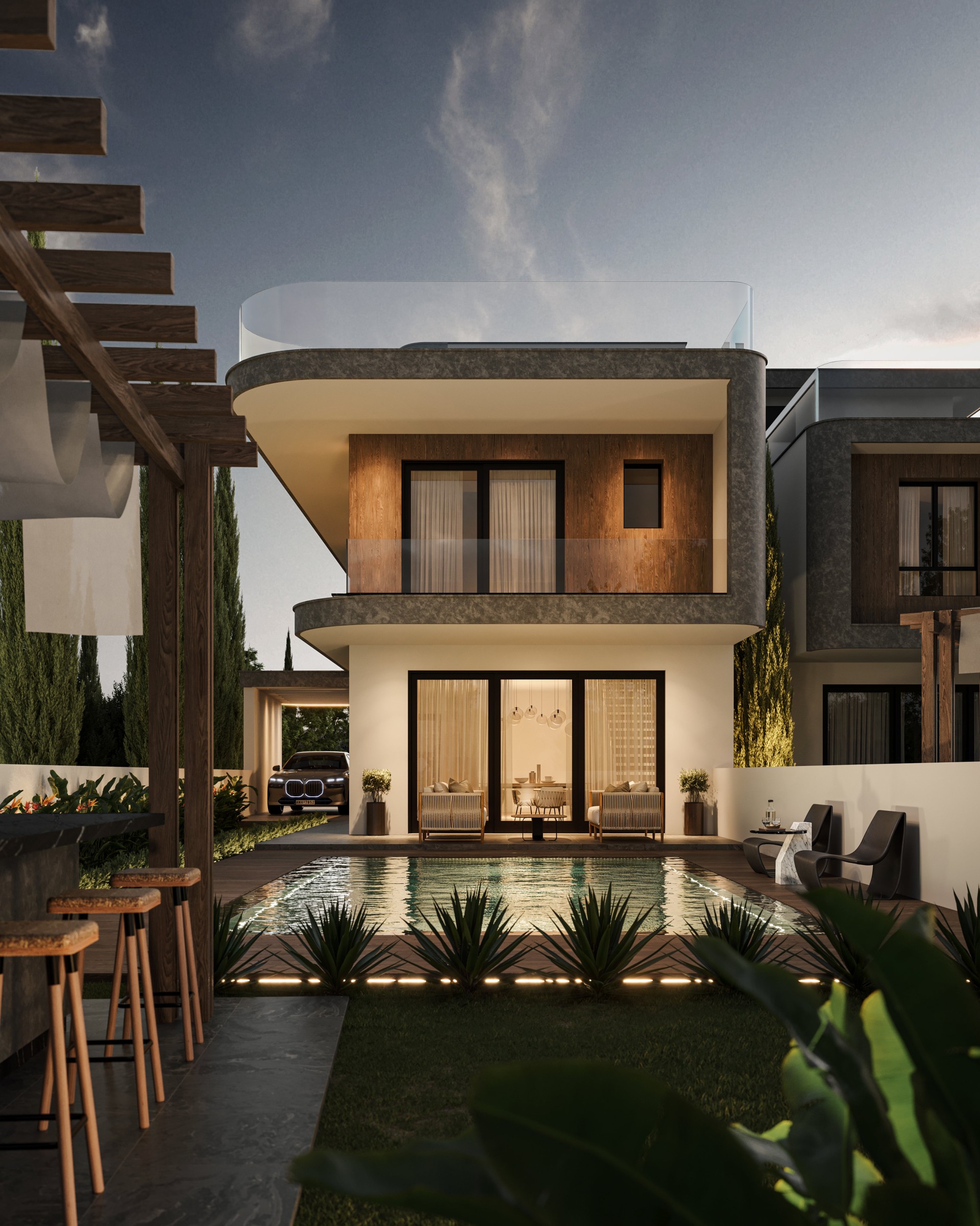 Outdoors, each villa features landscaped gardens, a private swimming pool, a dedicated BBQ area, and covered parking, creating an inviting setting for both relaxation and entertaining. With the option of a roof garden and walking-distance access to key facilities, these homes present an appealing choice for private use or investment in one of Larnaca’s most desirable coastal neighbourhoods.