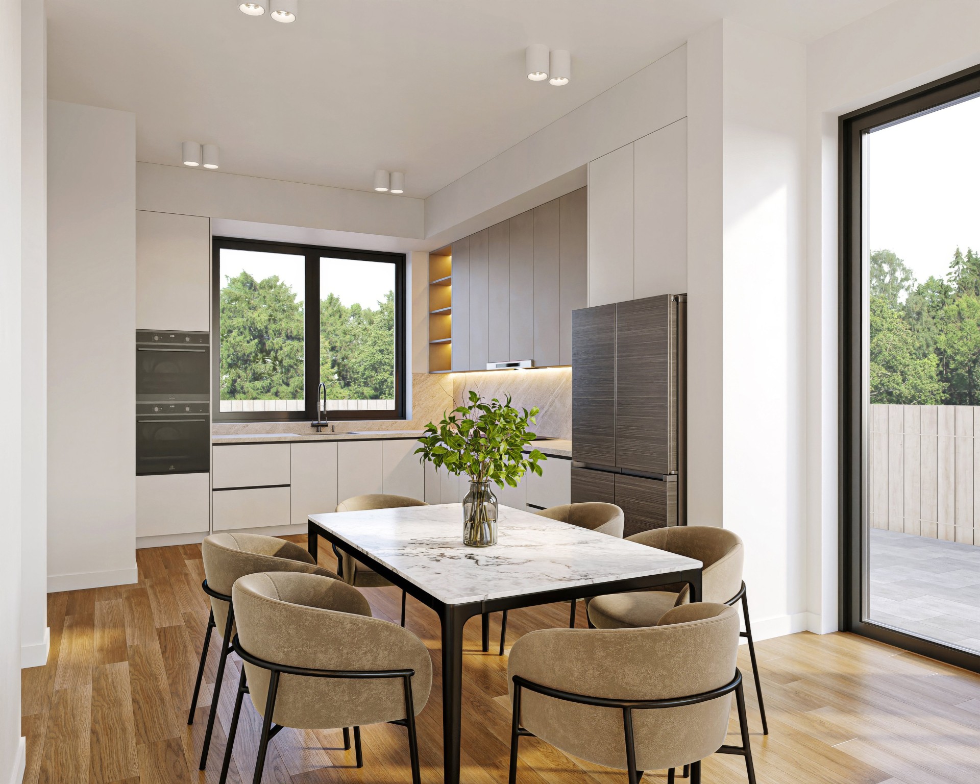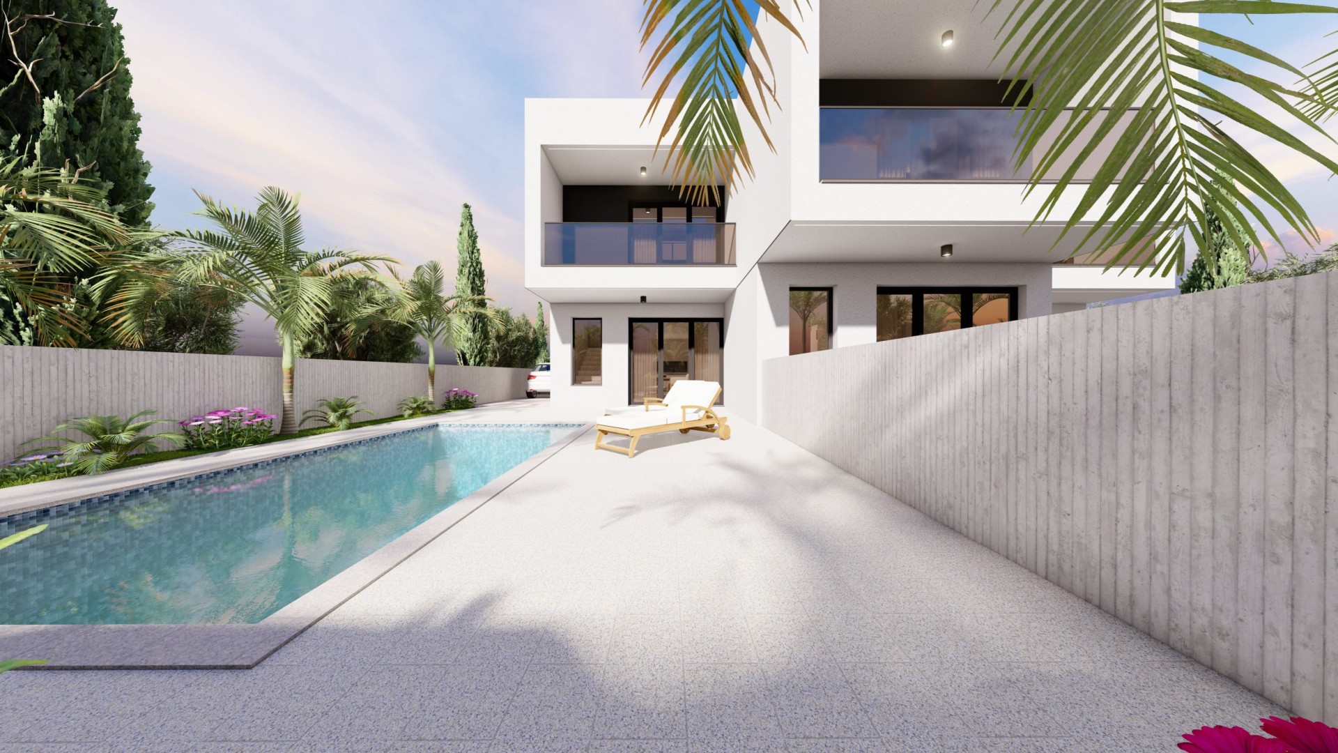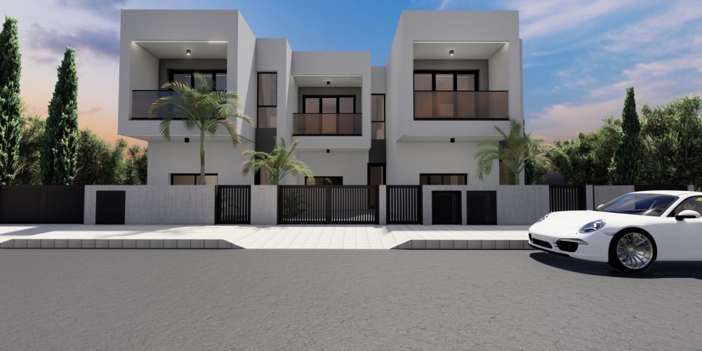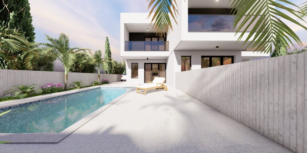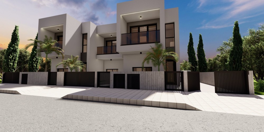 The property offers 115 m² of internal living space arranged over two floors, complemented by 28 m² of covered verandas. The layout includes a bright open-plan kitchen and living area, two spacious en-suite bedrooms, a guest WC, and well-designed bathrooms with showers. Designed with comfort and functionality in mind, the home also includes private parking, a storage room, and provision for air conditioning. An optional swimming pool can be added, offering additional lifestyle flexibility.