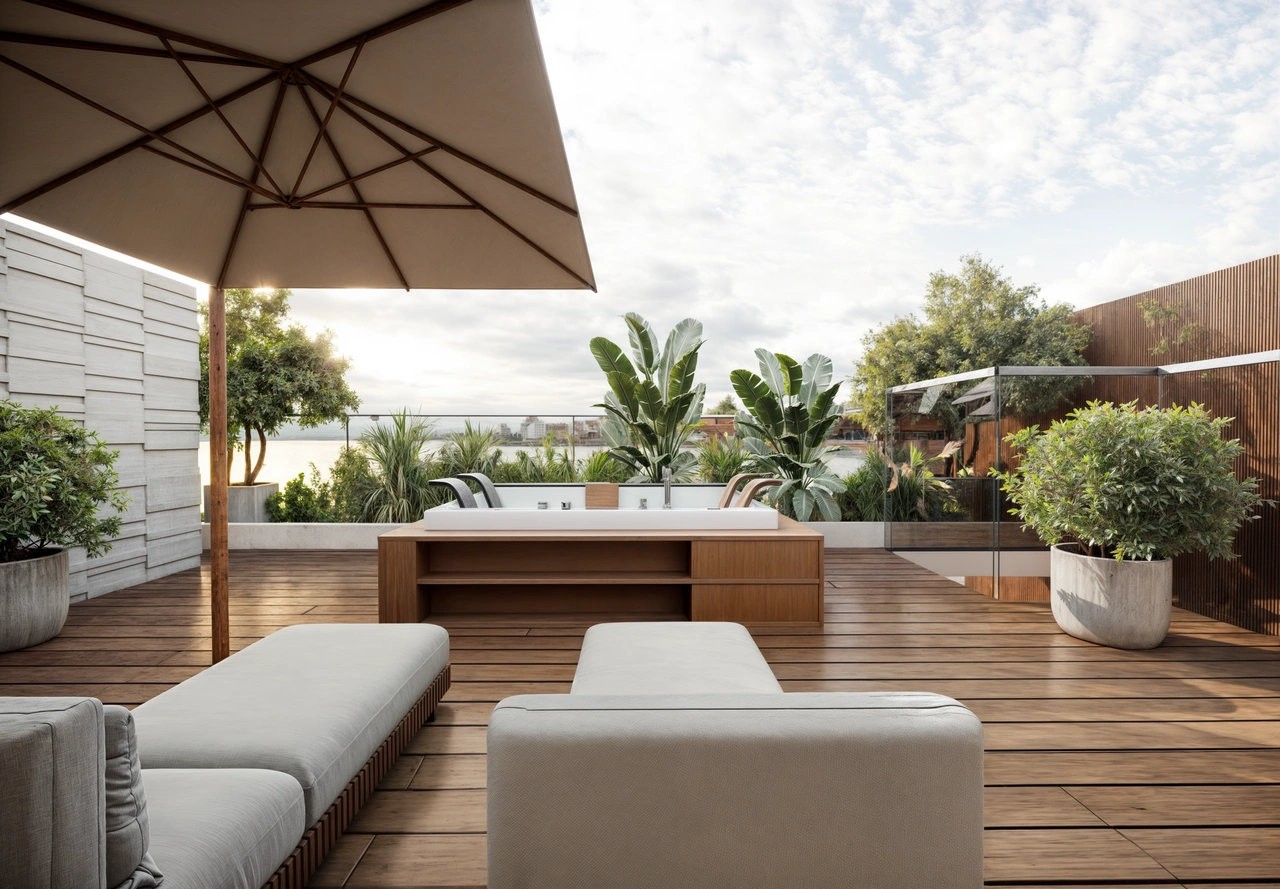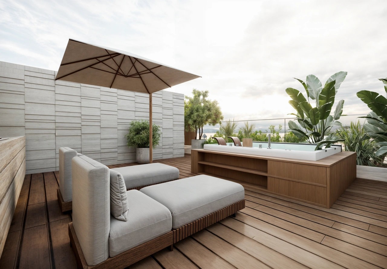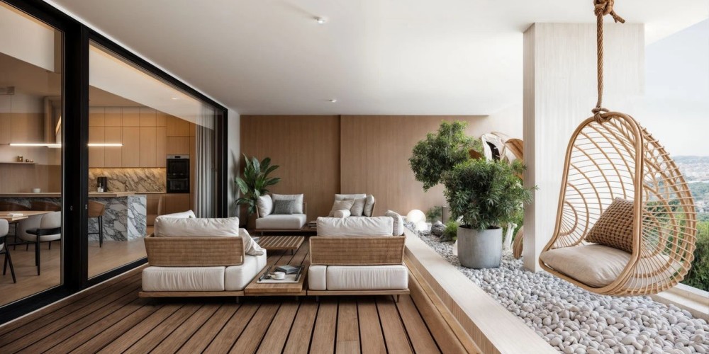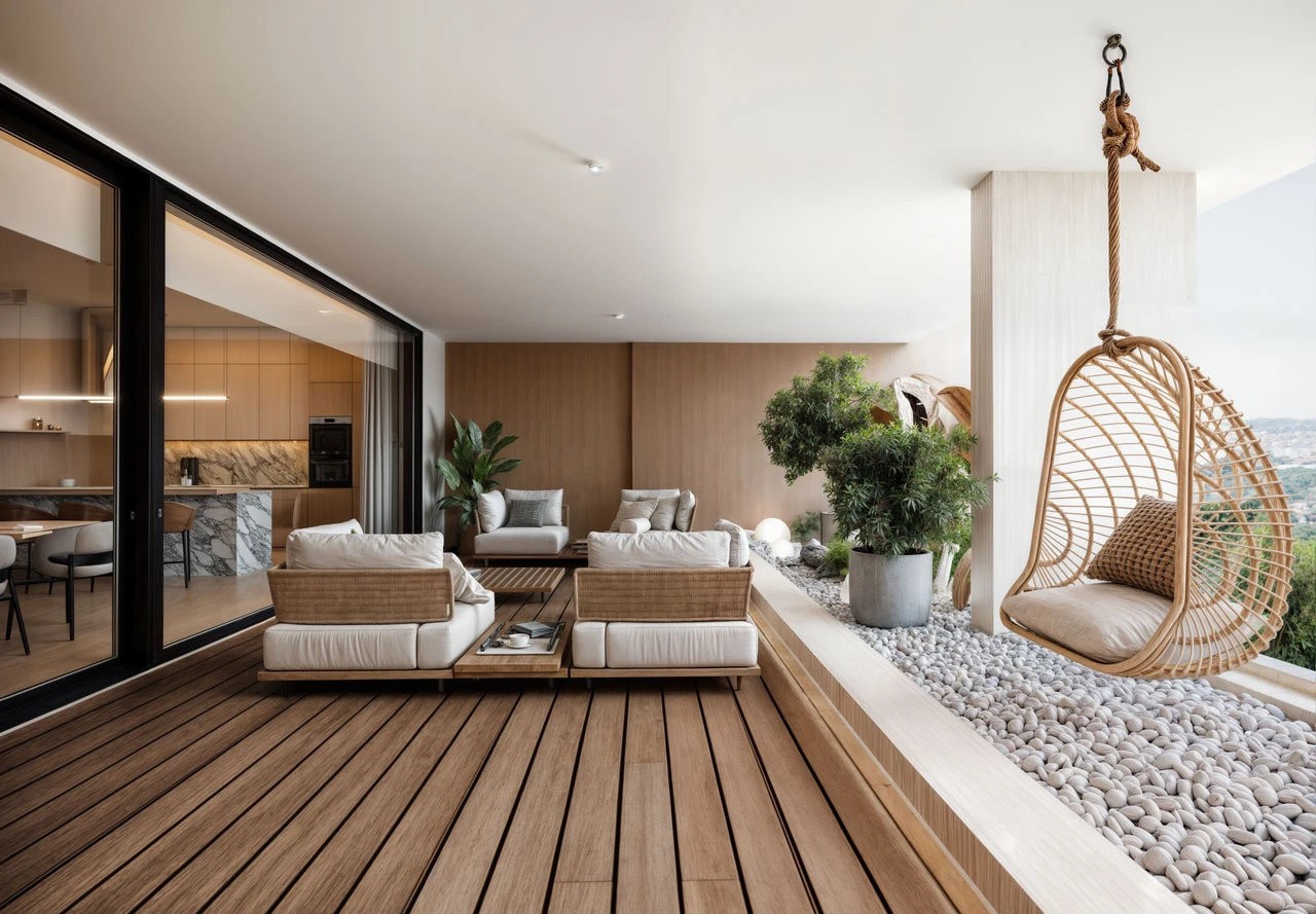 Each apartment benefits from dedicated storage facilities, as well as underground and ground-floor parking. Selected top-floor residences feature private rooftop gardens positioned over 13 metres above ground level, providing open views towards the city, the mountains, and the sea. Architectural elements such as wave-like terraces, natural materials, and integrated greenery contribute to a calm and visually appealing residential environment.
