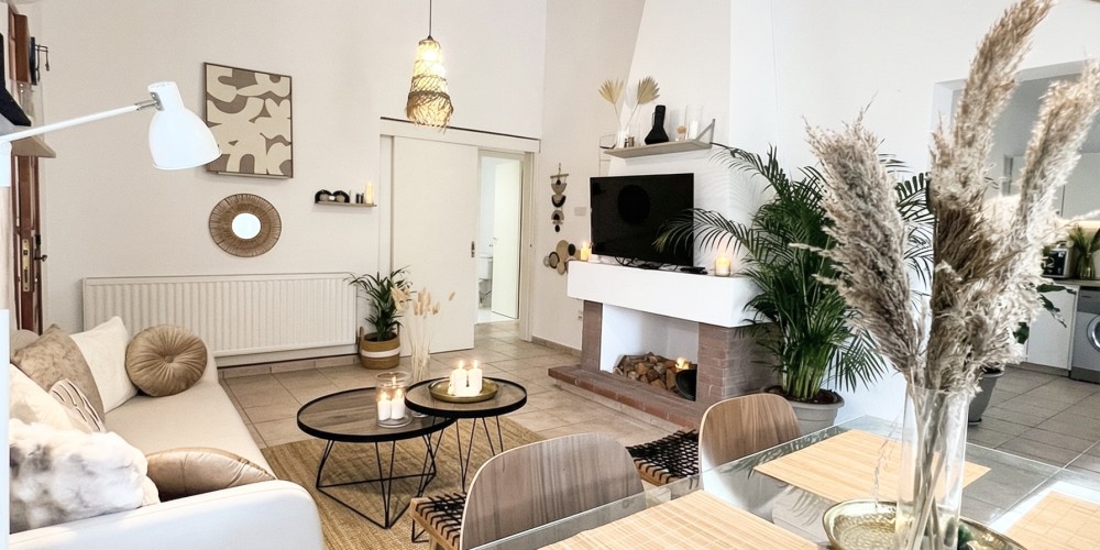 • Bright living area with fireplace