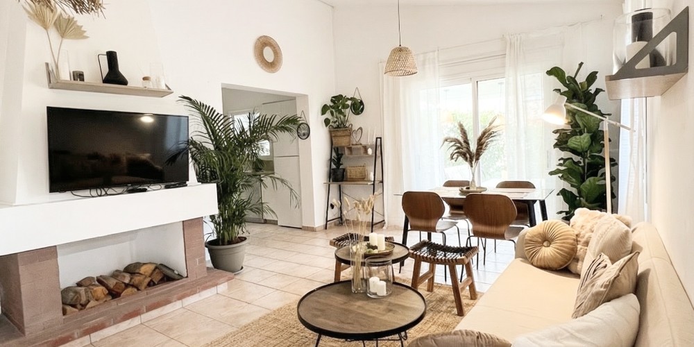 The villa provides 94 sqm of internal living space on a 521 sqm plot and includes three bedrooms, one of which is a master bedroom with en-suite bathroom, as well as an additional bathroom with a bathtub. The living area is bright and comfortable, featuring a fireplace and gas central heating.