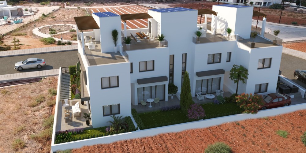 This boutique residential development is located in the charming Kapparis area, offering an exclusive collection of four elegant maisonettes designed for privacy, comfort, and the island lifestyle. Each unit features two spacious bedrooms, two modern bathrooms, and a private roof garden with stunning sea views and peaceful surroundings. Positioned on an elevated site, the development is just a short 10-minute drive to the nearest beach and within walking distance of local shops, restaurants, and amenities. Whether for a stylish holiday home, a permanent residence, or an investment opportunity, this development combines modern living with coastal charm in a sought-after location.