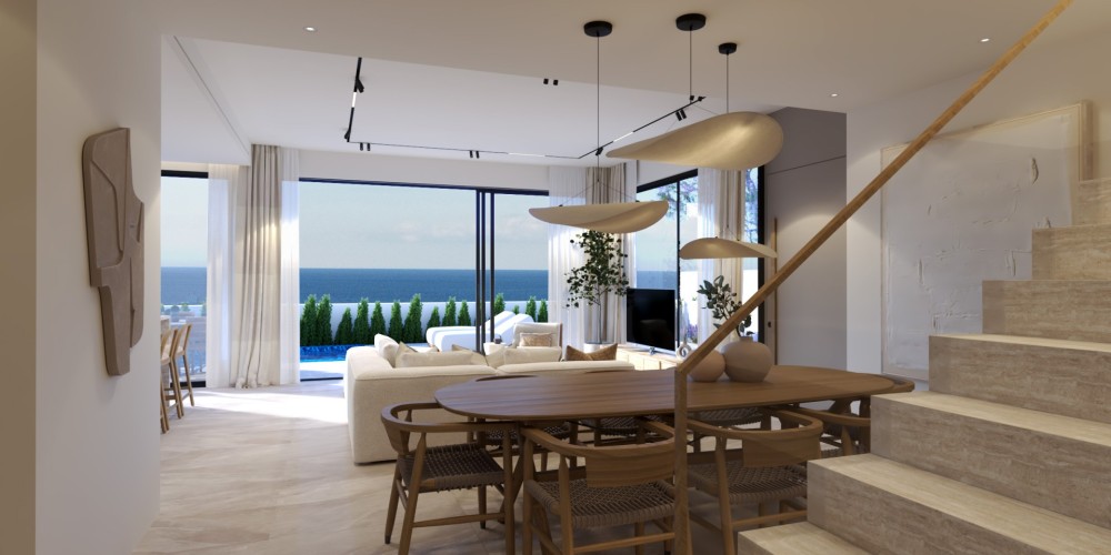 This exclusive collection of 4- and 5-bedroom villas is perfectly situated just 500 meters from Yianna Marie Beach and the scenic coastal pathway leading to the vibrant Protaras strip. Each villa has been designed to offer a blend of modern luxury and relaxed Mediterranean living, with elegant open-plan interiors, premium finishes, and private outdoor spaces. Residents can enjoy private overflow swimming pools, landscaped gardens, expansive roof terraces with 360° panoramic views of the resort and Famagusta skyline, and convenient private parking. The location provides easy access to restaurants, cafes, beach bars, and local amenities, making these villas ideal for permanent living, holiday retreats, or high-yield investment opportunities.