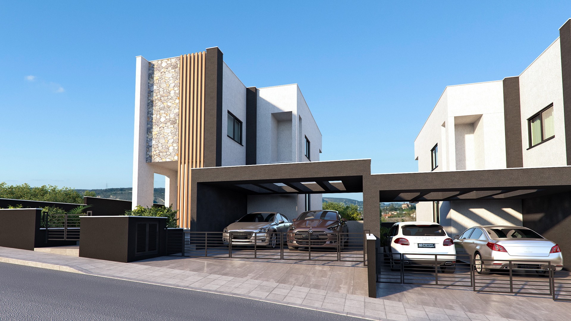 The project offers practical solutions for daily living, including double covered parking for each home, and is situated within easy driving distance of Limassol city, combining a peaceful setting with access to urban amenities.
