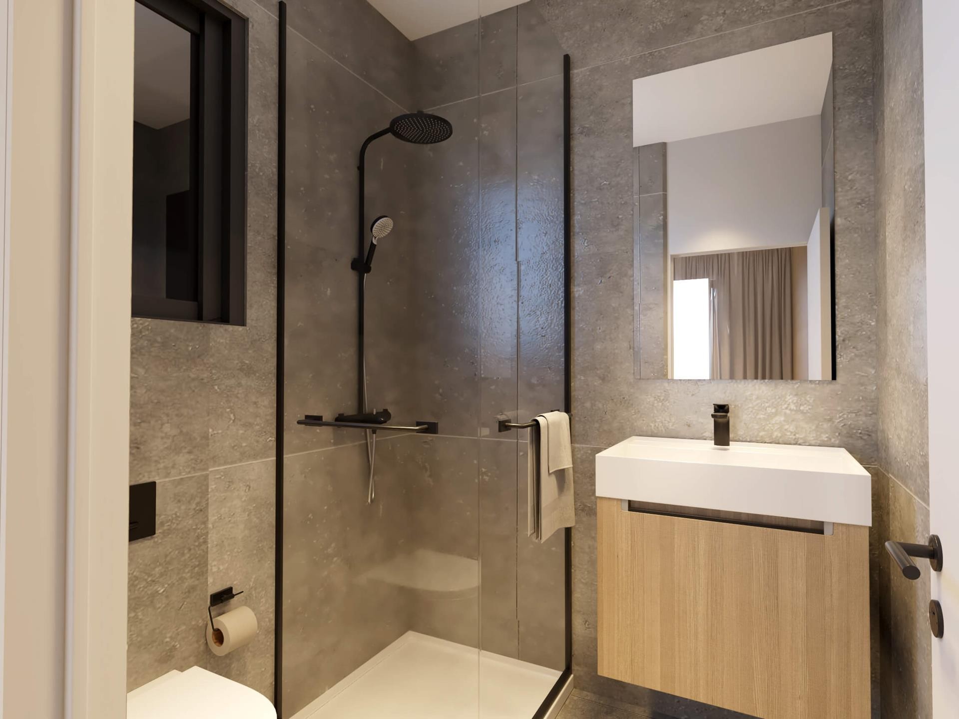 Constructed using contemporary building techniques, the apartments combine practical layouts with durable materials and carefully selected finishes. The design focuses on functionality, safety and modern standards, creating a balanced living experience in a peaceful residential setting.