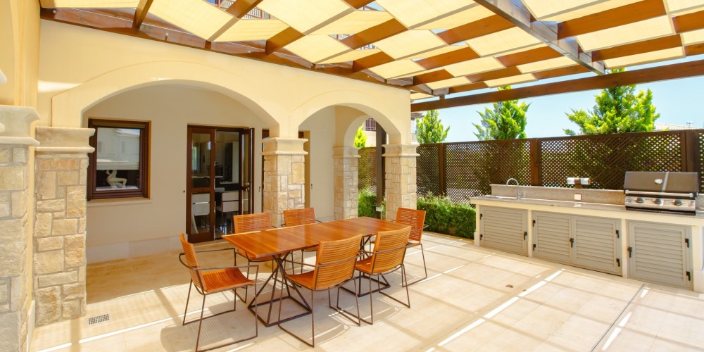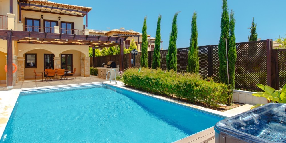This elegant three-bedroom villa is situated in the highly sought-after Alexander Heights area, occupying a south-facing plot with open sea views. The location offers immediate access to the village square with shops and restaurants, as well as nearby sports and leisure facilities, all within a short walking distance. The property is fully furnished and equipped, allowing for immediate use or rental.