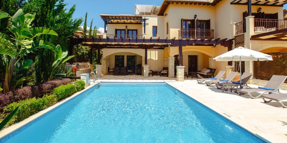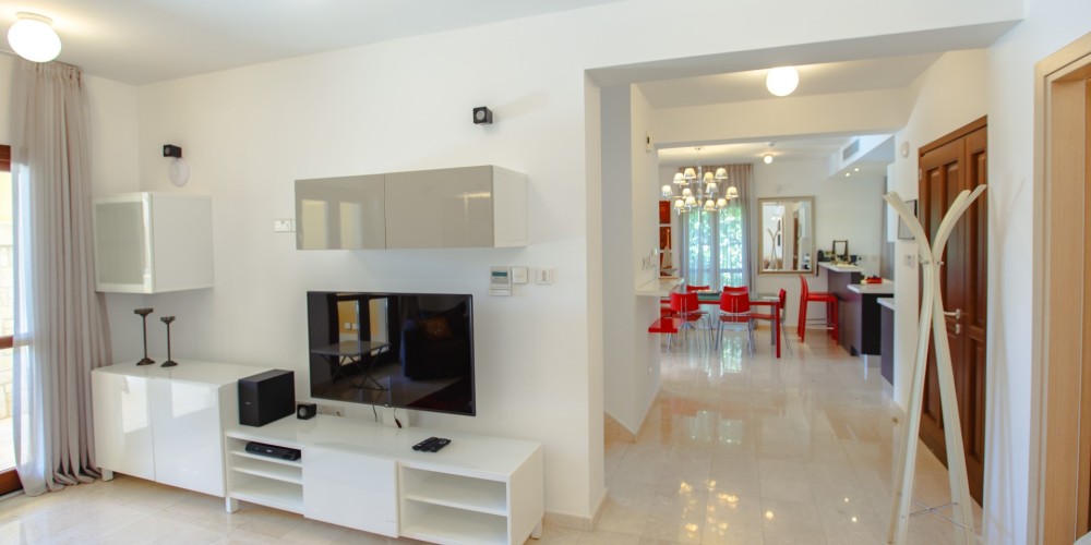 This elegant three-bedroom villa is situated in the highly sought-after Alexander Heights area, occupying a south-facing plot with open sea views. The location offers immediate access to the village square with shops and restaurants, as well as nearby sports and leisure facilities, all within a short walking distance. The property is fully furnished and equipped, allowing for immediate use or rental.