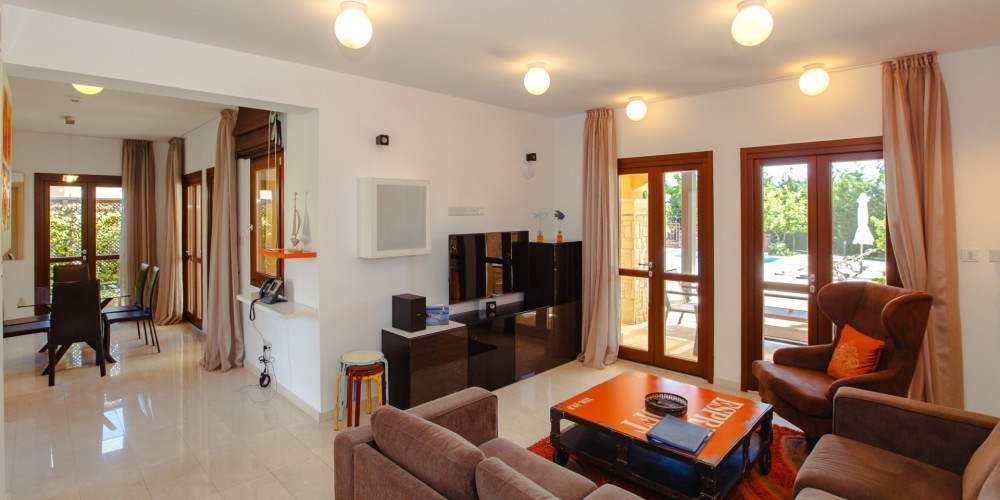 This elegant three-bedroom villa is situated in the highly sought-after Alexander Heights area, occupying a south-facing plot with open sea views. The location offers immediate access to the village square with shops and restaurants, as well as nearby sports and leisure facilities, all within a short walking distance. The property is fully furnished and equipped, allowing for immediate use or rental.