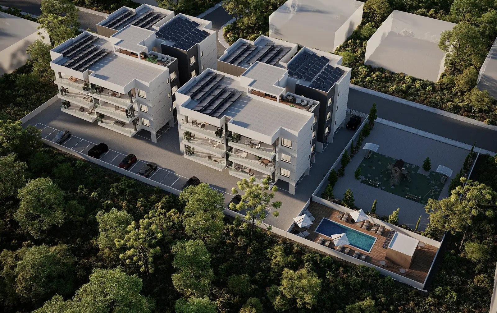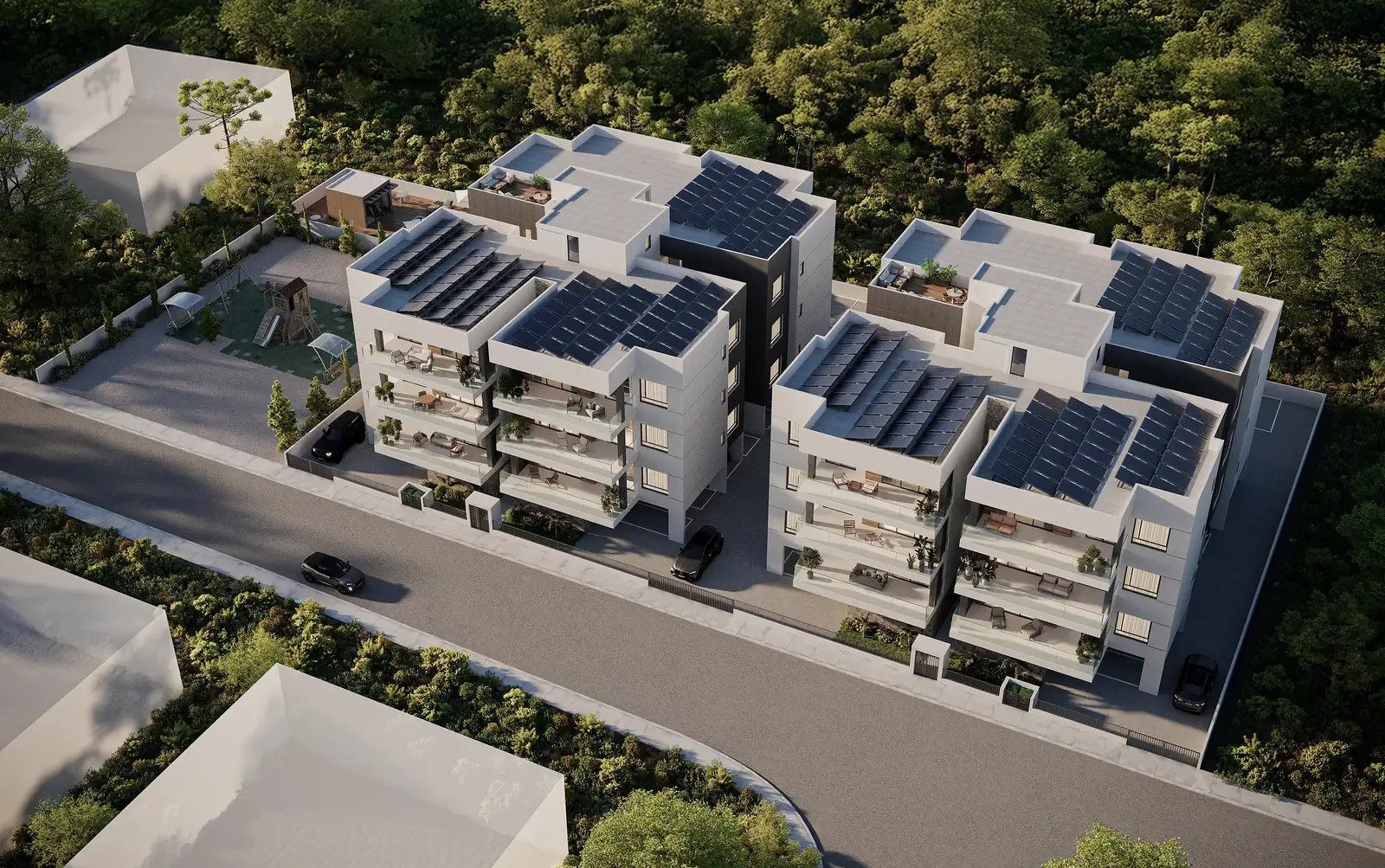 This new residential development in Kato Polemidia offers modern 3-bedroom apartments designed for comfort, privacy, and high-quality living. Each apartment is fully independent, with no shared walls between units, providing excellent sound insulation and a heightened sense of privacy.