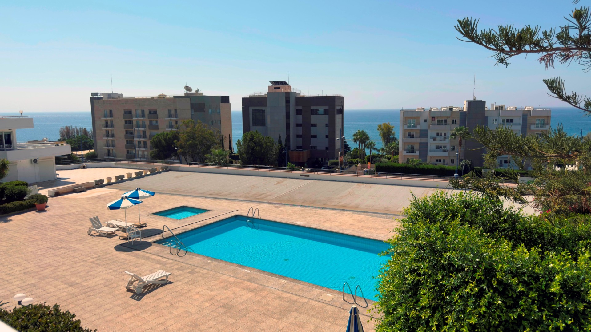 This resale apartment is located in Agios Tychonas, Limassol and offers a covered area of 120 sq.m. The property features two bedrooms and a covered veranda of 25 sq.m., providing additional outdoor living space. One parking space is included.