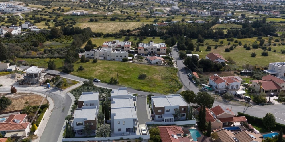 This contemporary residential development in Erimi, Limassol comprises seven three- and four-bedroom villas. The properties are located just minutes from the beach and offer a combination of modern design and spacious living. The collection includes three detached and four semi-detached homes, each with private gardens and open views.