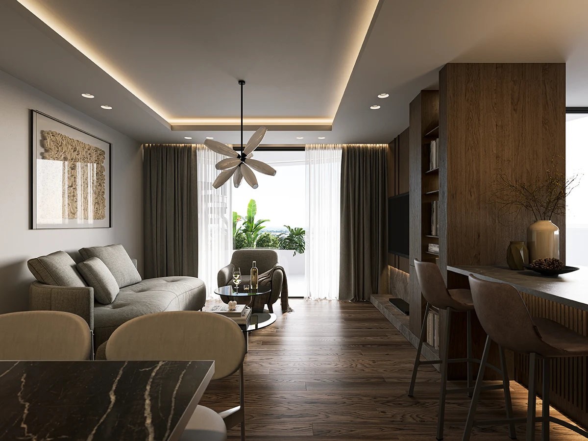 The development comprises one- and two-bedroom apartments designed for modern living. The penthouse residences feature spacious private roof gardens, offering an ideal setting for relaxation and open views. The project is planned for completion in 2026, providing a contemporary residential environment within easy reach of the beach and nearby amenities while maintaining a calm and residential atmosphere.