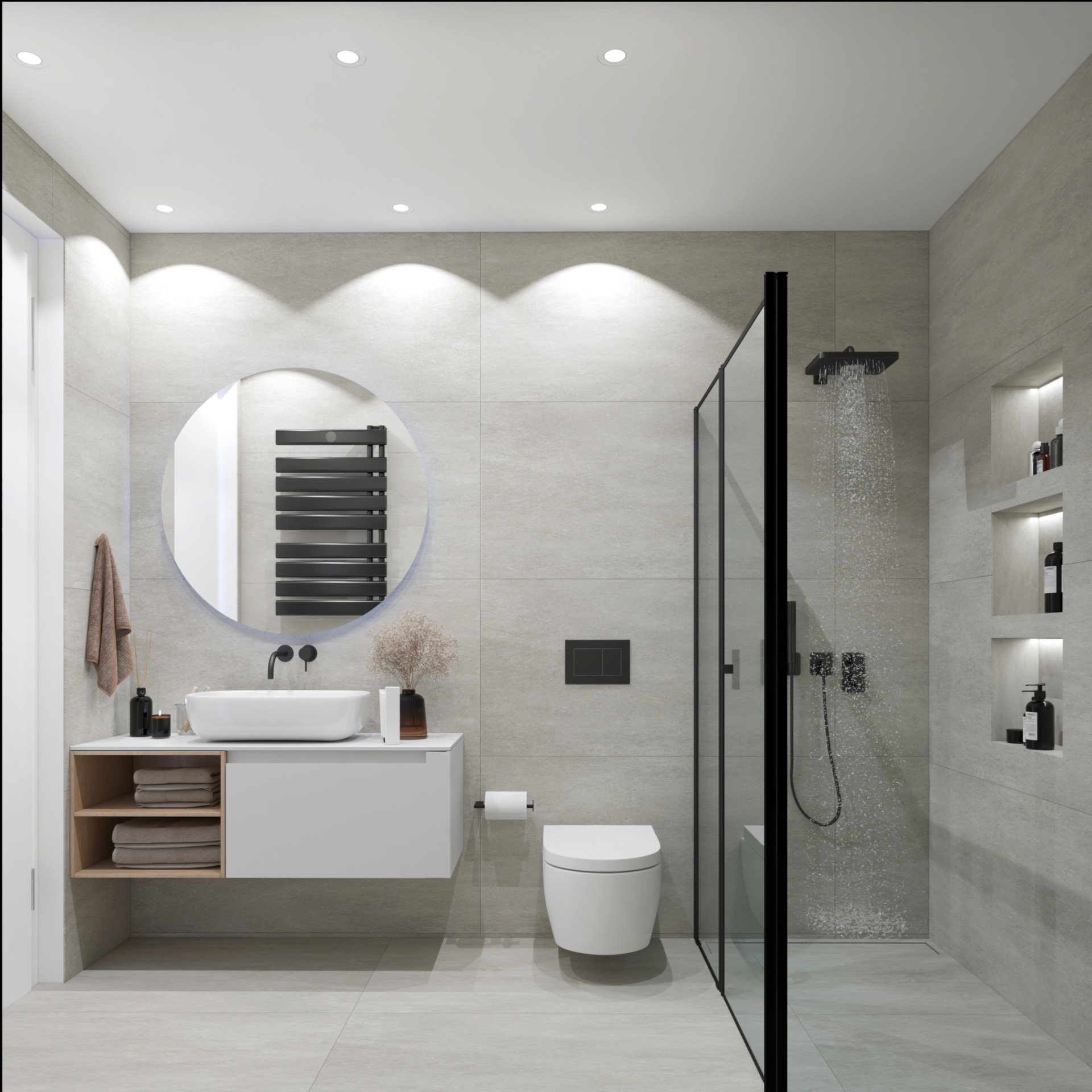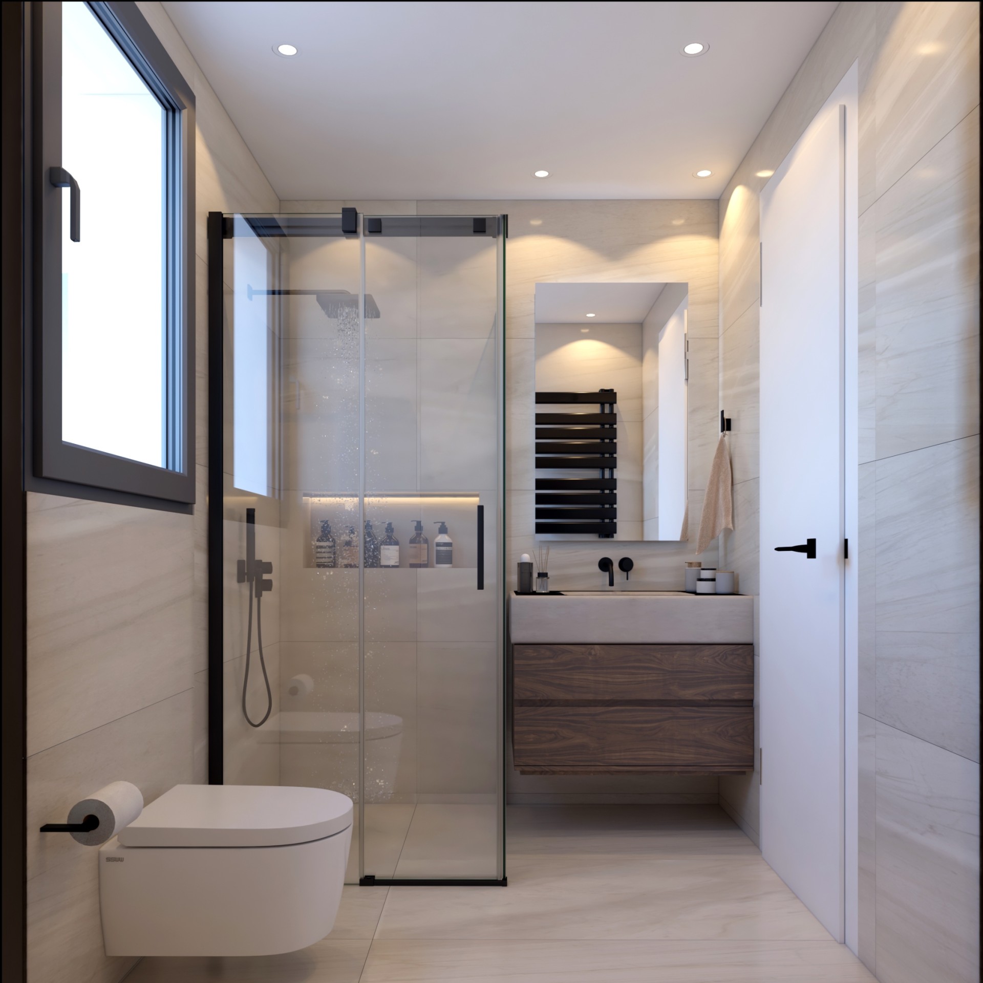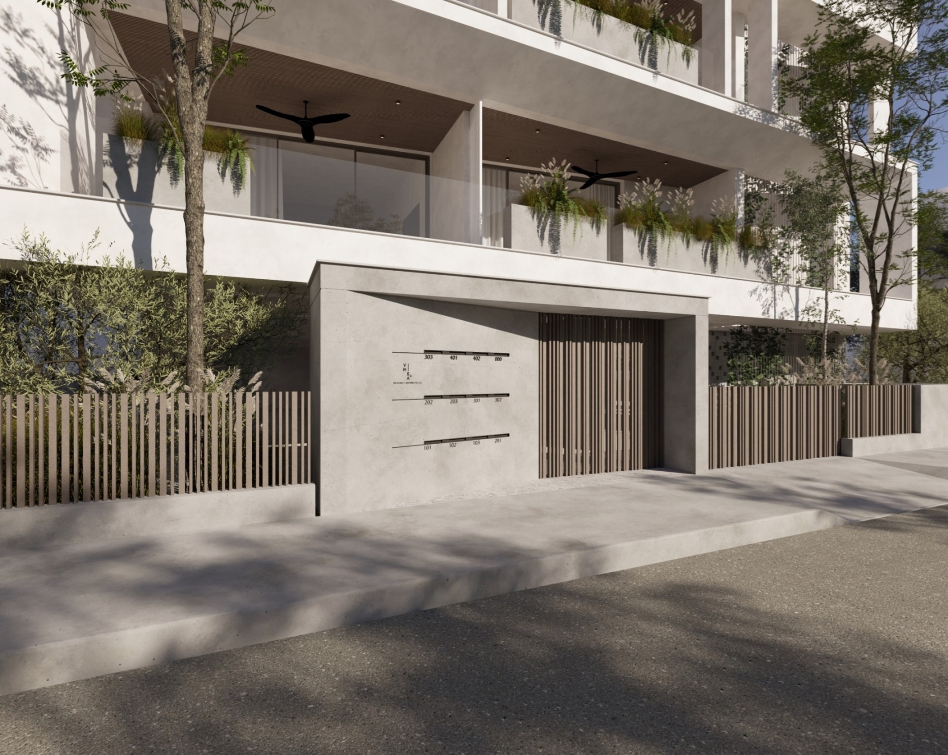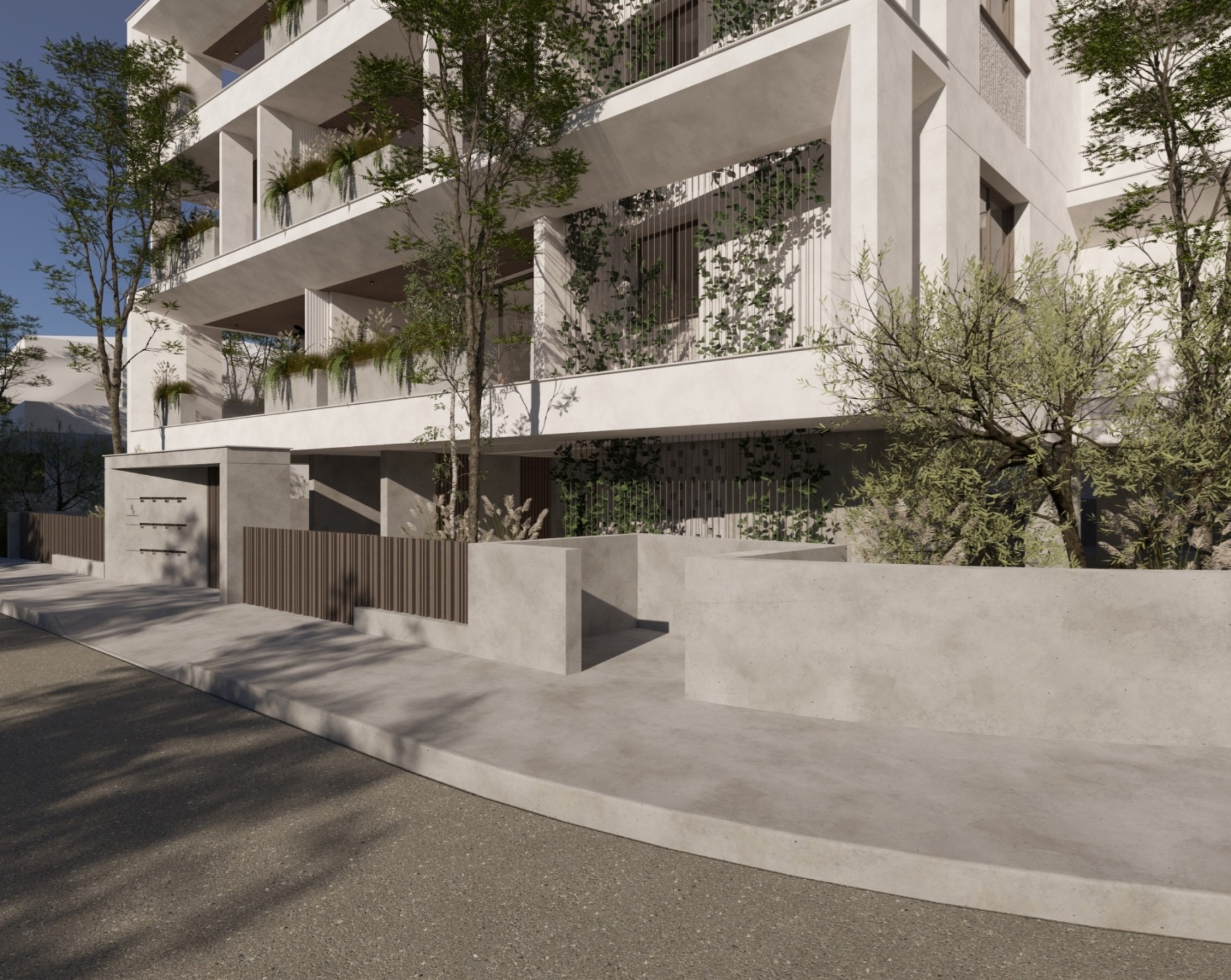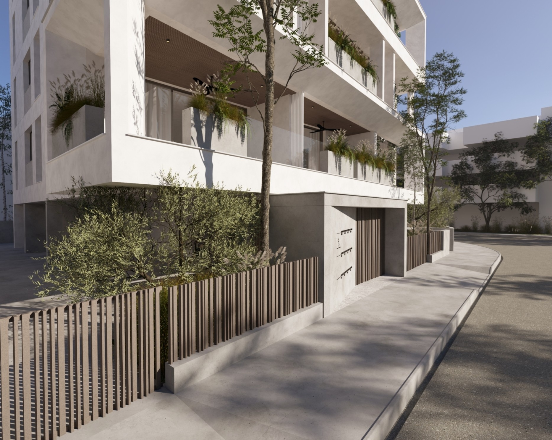 The project consists of a modern four-storey residential building with a total of eleven apartments. The residences are designed with a practical layout that maximises the use of space and provides comfortable interiors for daily living. Each apartment includes two bedrooms and two bathrooms, as well as spacious covered verandas that extend the living area outdoors.