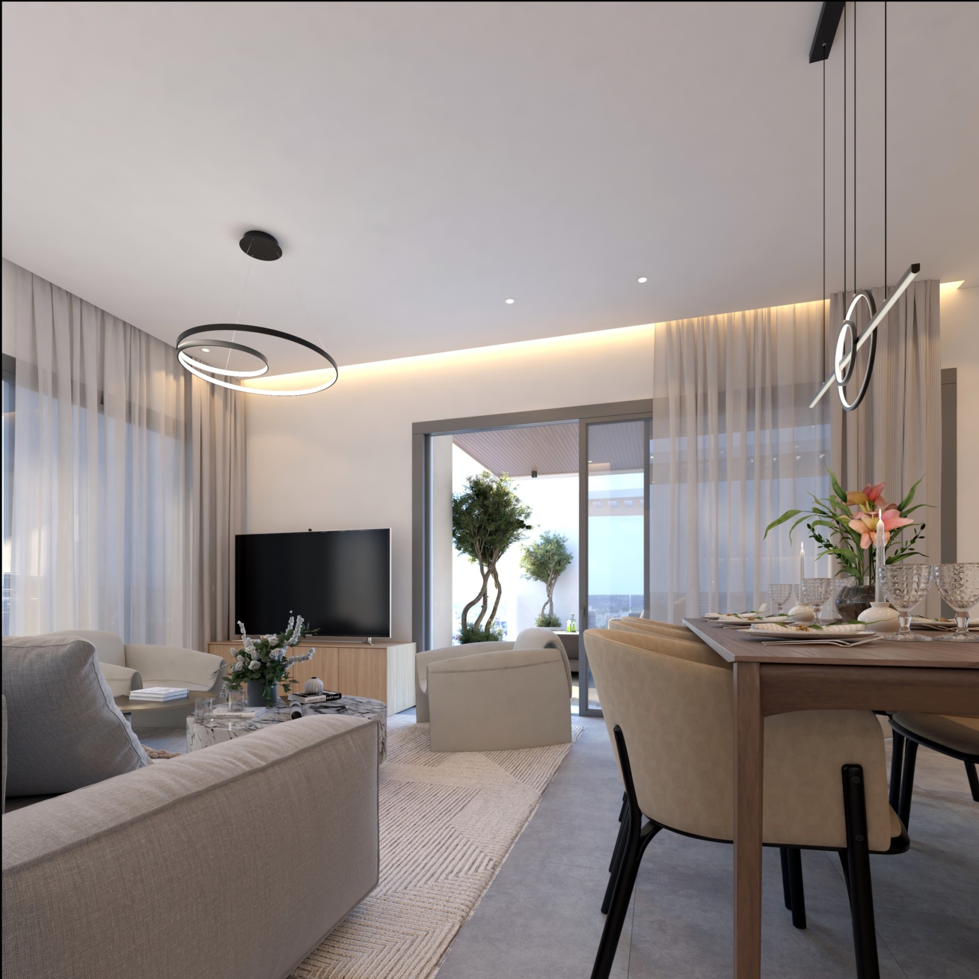 The location offers convenient access to key amenities and landmarks. Finikoudes Beach, shops and restaurants, schools, and other city facilities are all within a short walking distance, while Larnaca International Airport can be reached by car in approximately ten minutes.