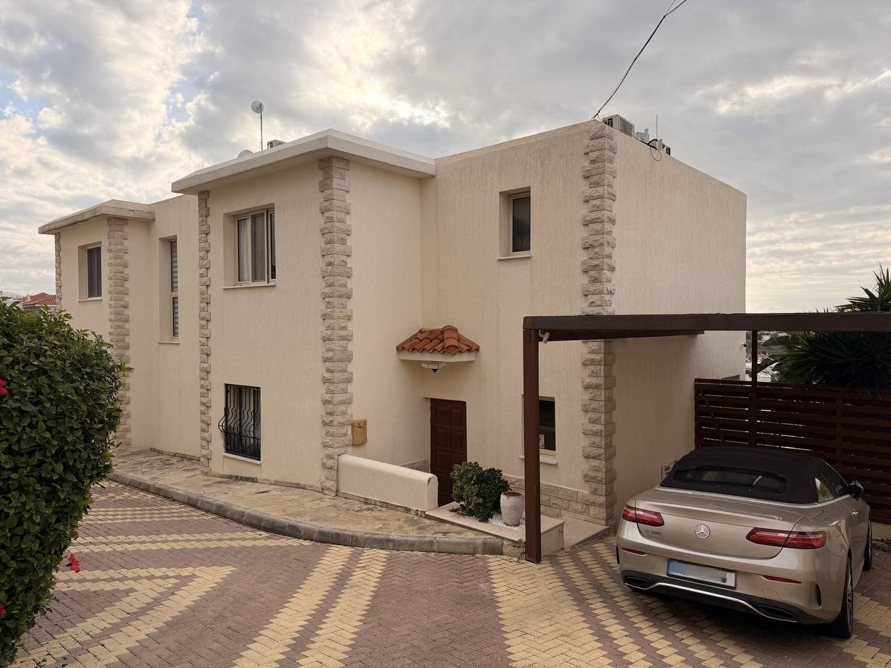 This four-bedroom villa is located in Chlorakas, Paphos and offers sea views along with a practical multi-level layout designed for comfortable living. The property is situated on a plot of 225 m² and includes well-organised indoor and outdoor spaces.