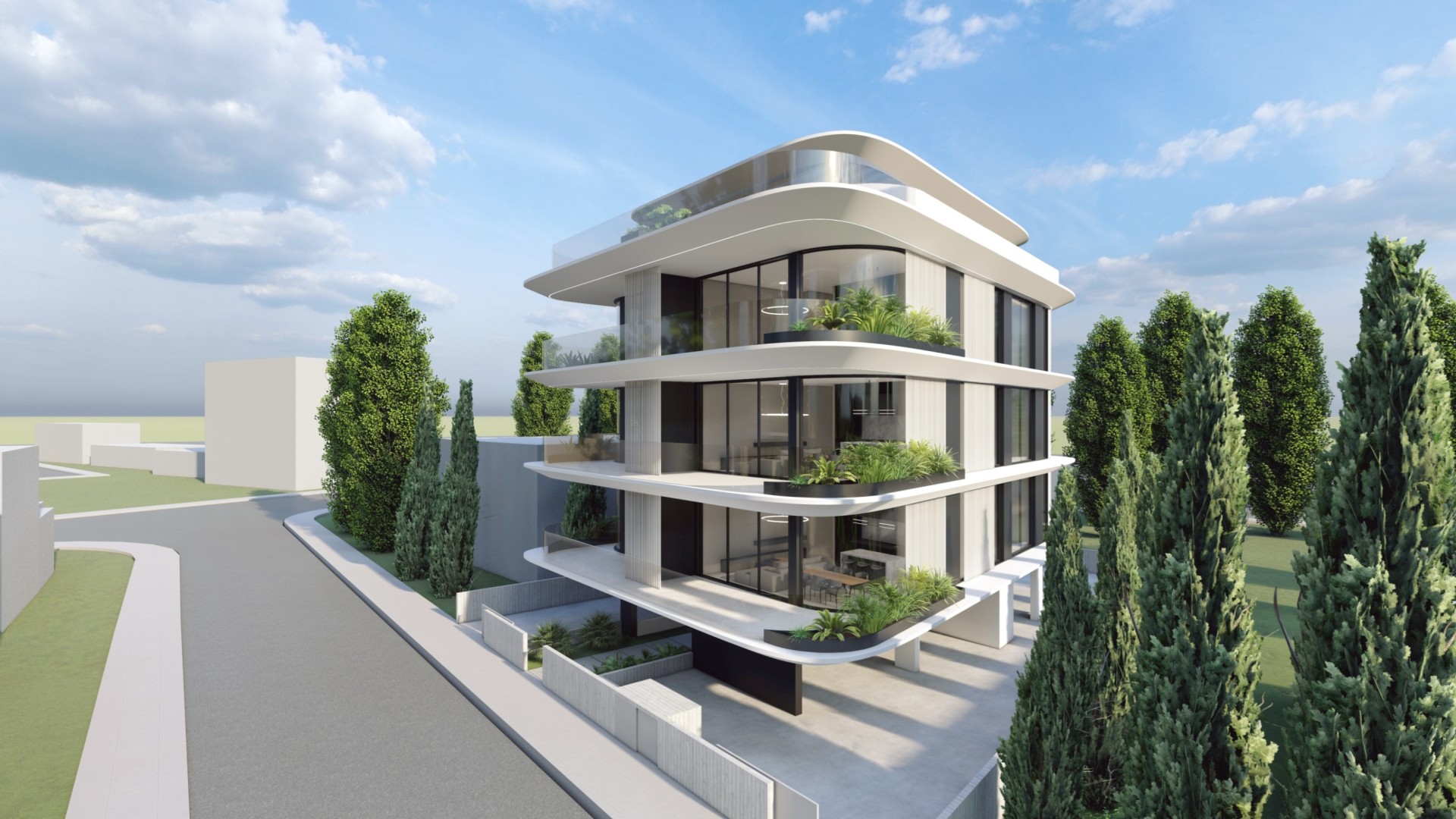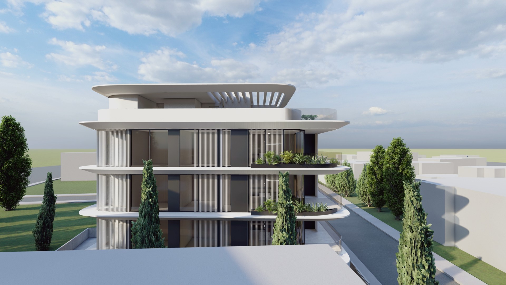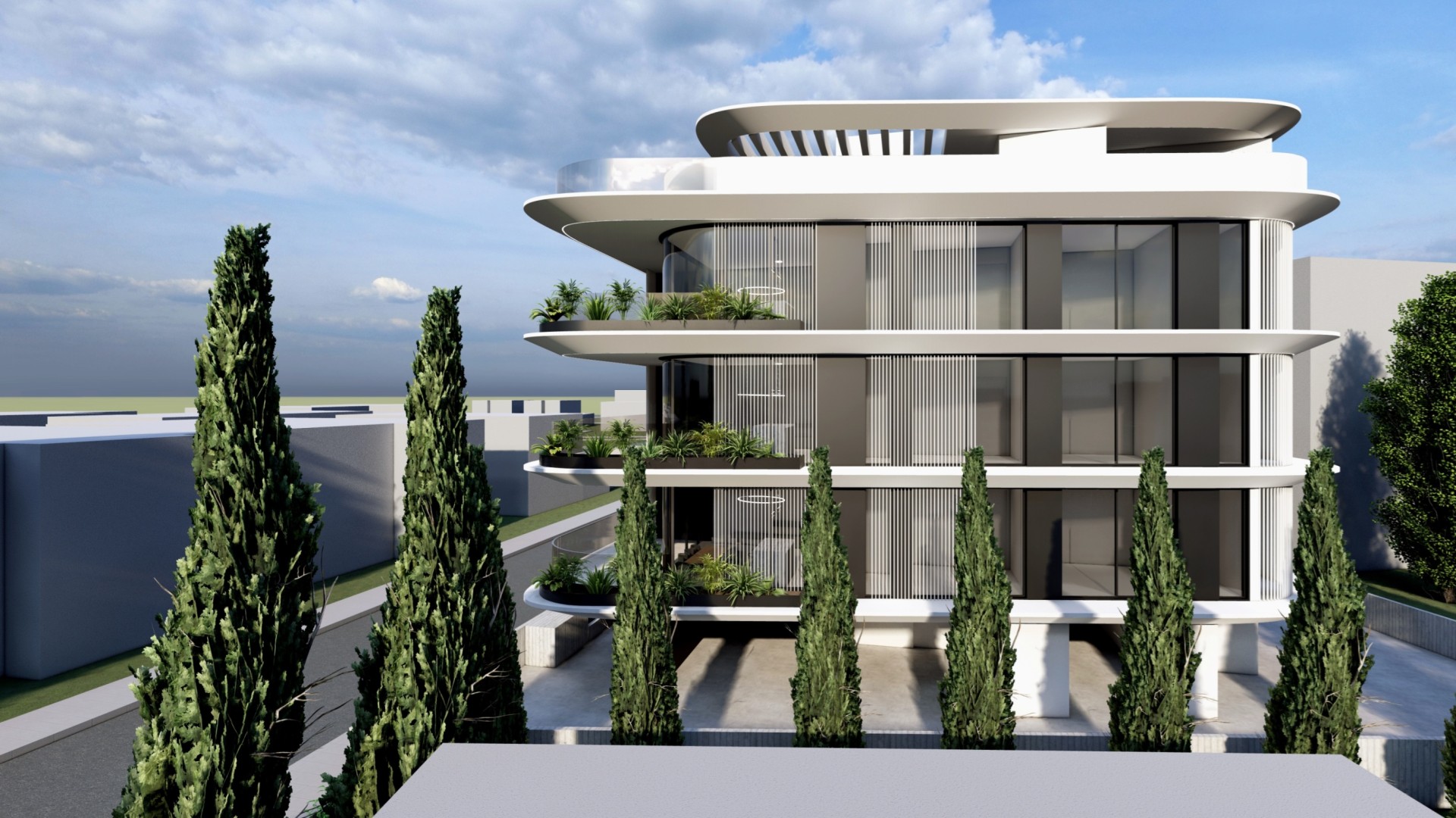 This residential development is located in Geroskipou, Paphos and offers a low-density living environment with only six apartments in total. The building is thoughtfully arranged to provide privacy and a comfortable residential atmosphere.