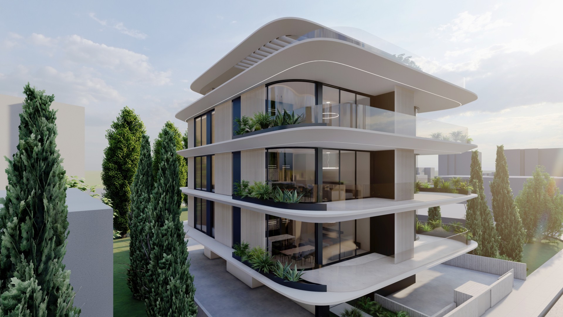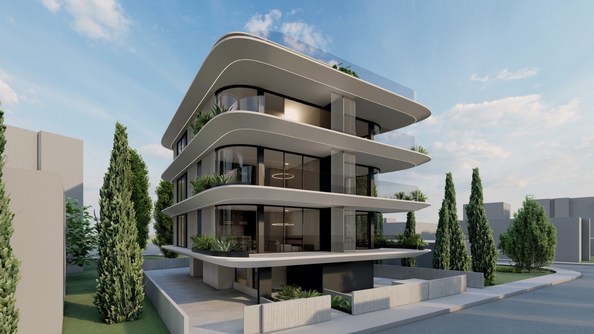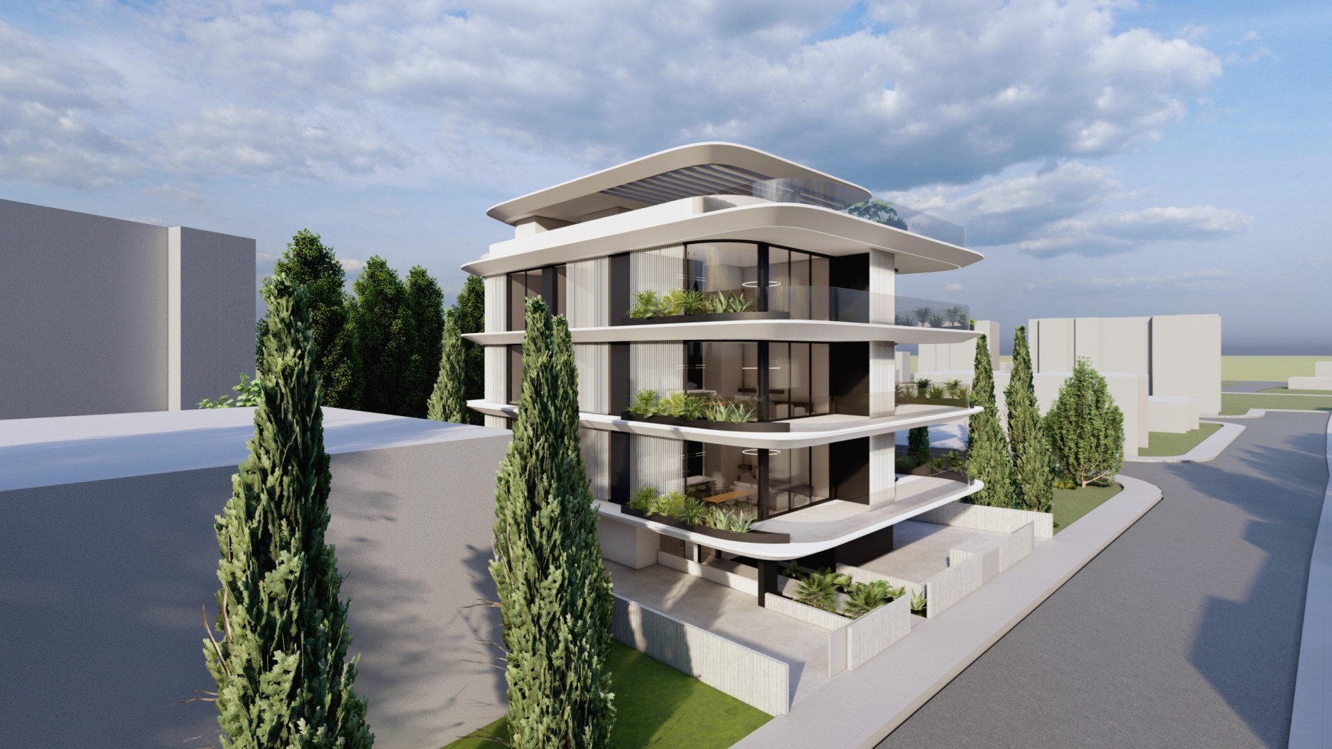 This residential development is located in Geroskipou, Paphos and offers a low-density living environment with only six apartments in total. The building is thoughtfully arranged to provide privacy and a comfortable residential atmosphere.