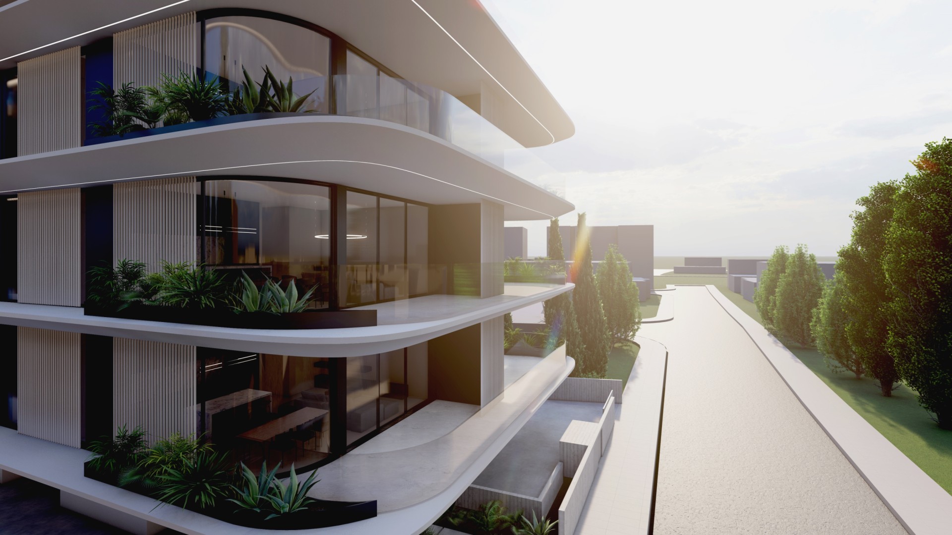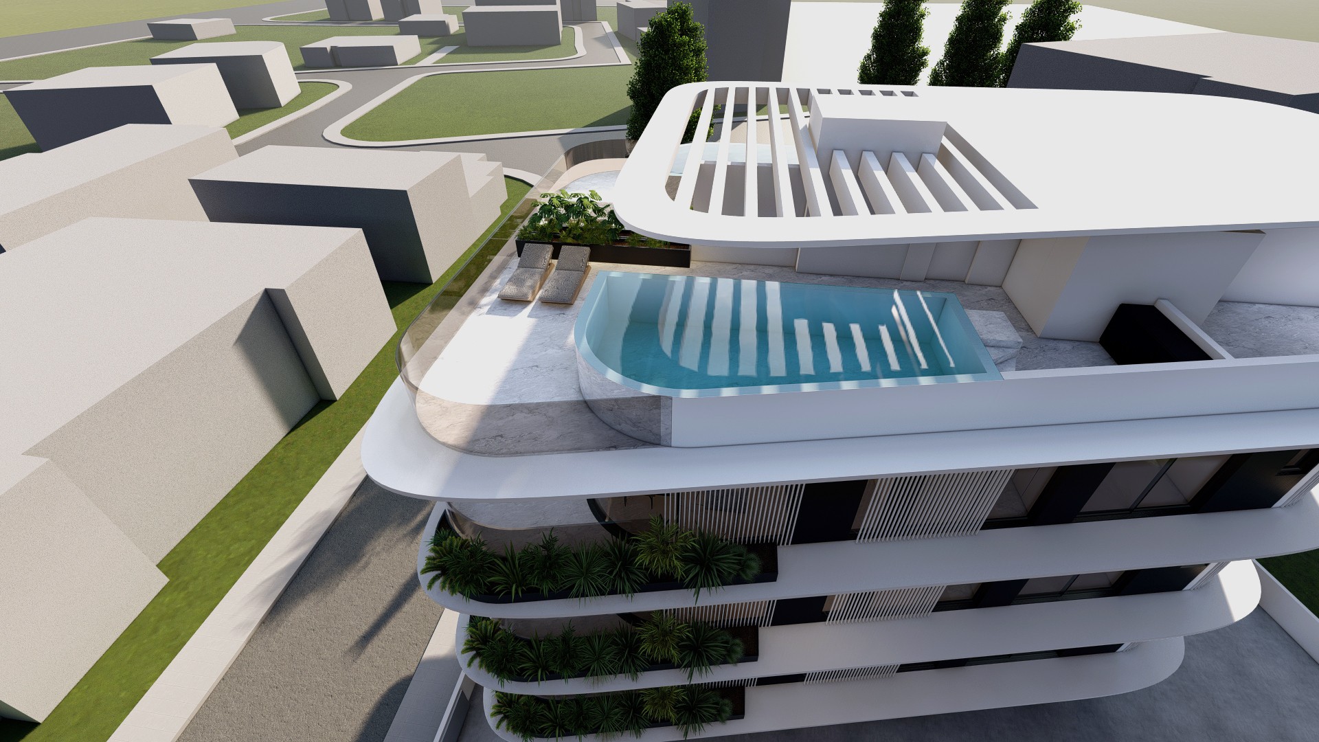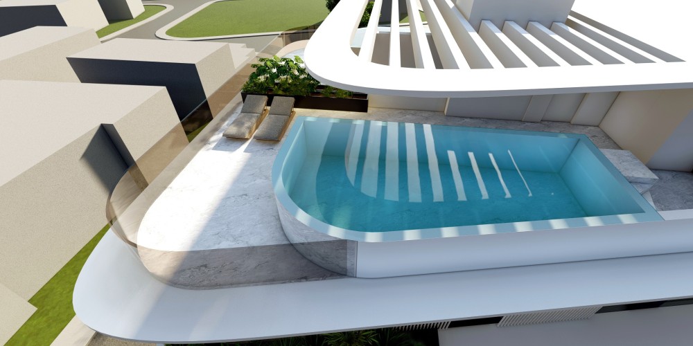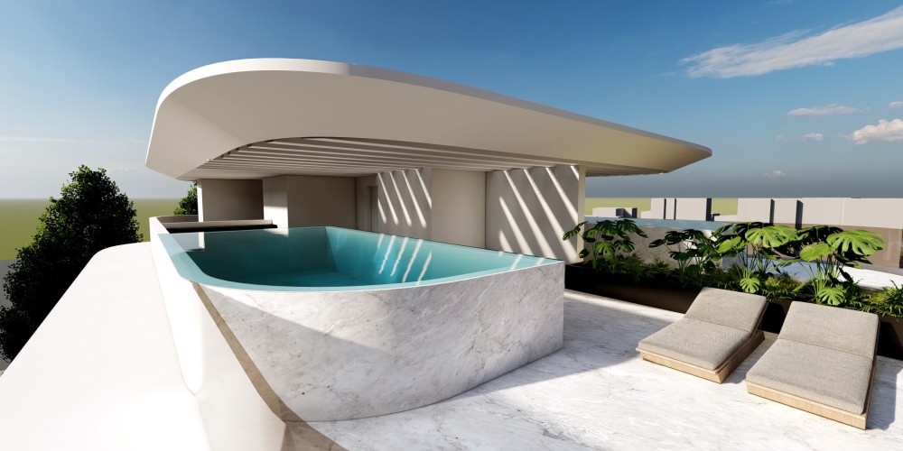 Residents benefit from shared amenities, including a rooftop pool area that enhances the overall living experience and creates an additional space for relaxation. Selected apartments on the third floor also feature private swimming pools, offering an elevated level of comfort and exclusivity.