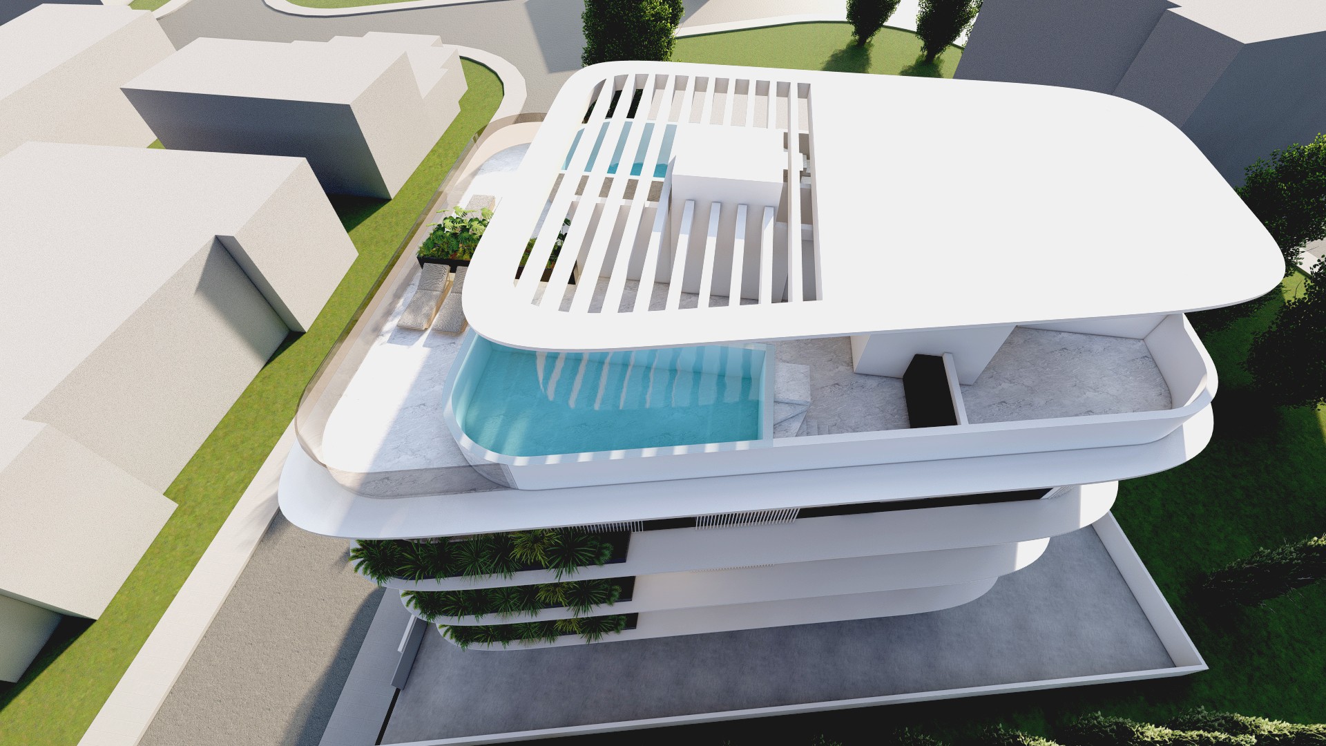• Private swimming pools for apartments 301 and 302