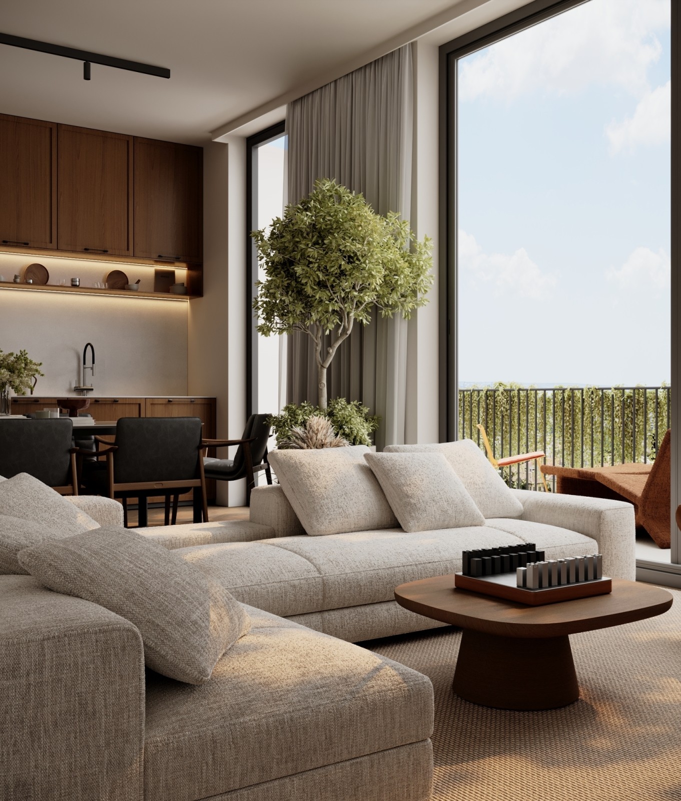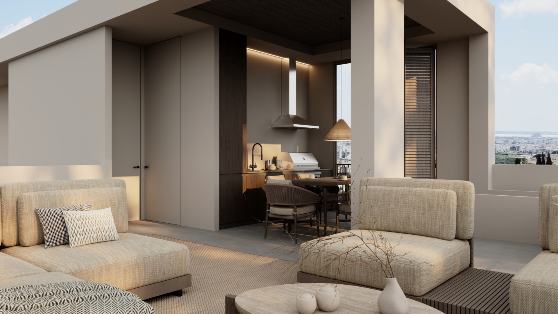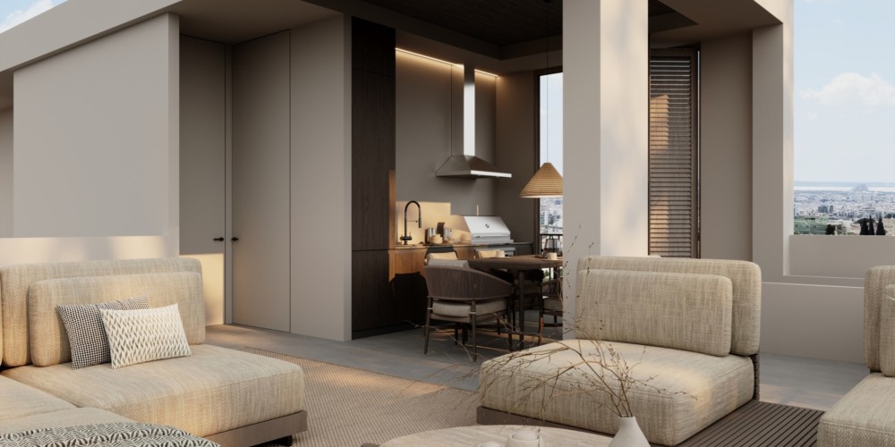 The architectural concept focuses on balance, clarity, and functionality, with thoughtfully designed interiors that maximise space and natural light. Each residence features open-plan living and kitchen areas that extend to spacious verandas, creating a seamless indoor-outdoor flow. The layouts also include a separate guest bedroom with a bathroom, as well as a private master suite designed for comfort and seclusion.