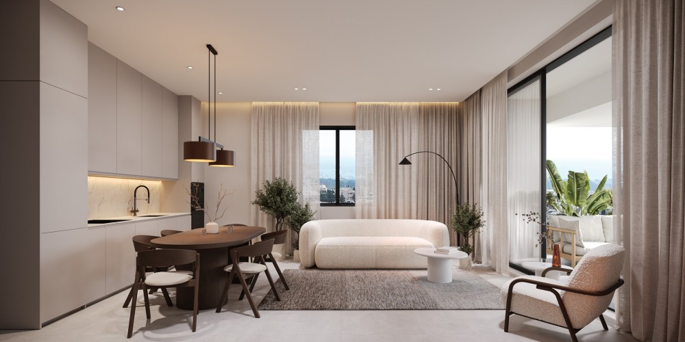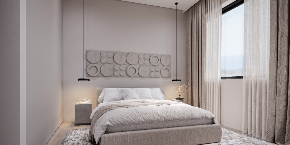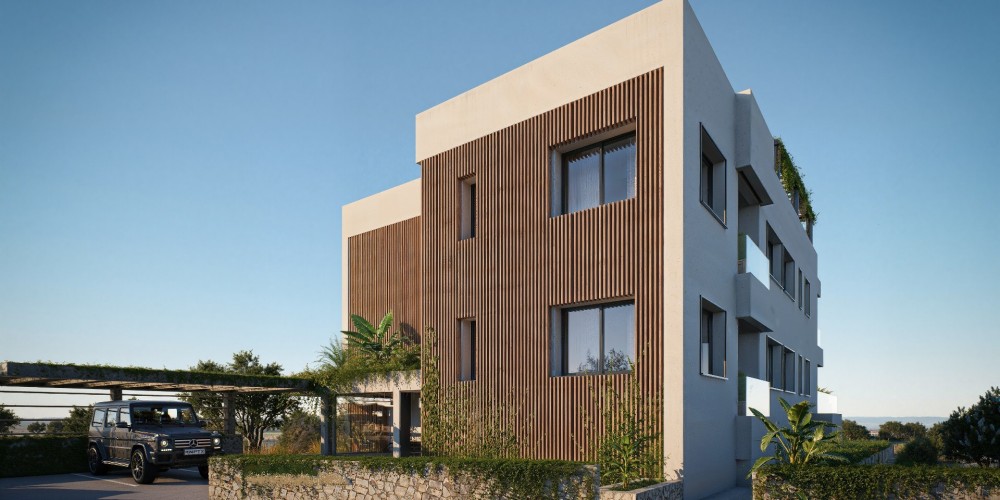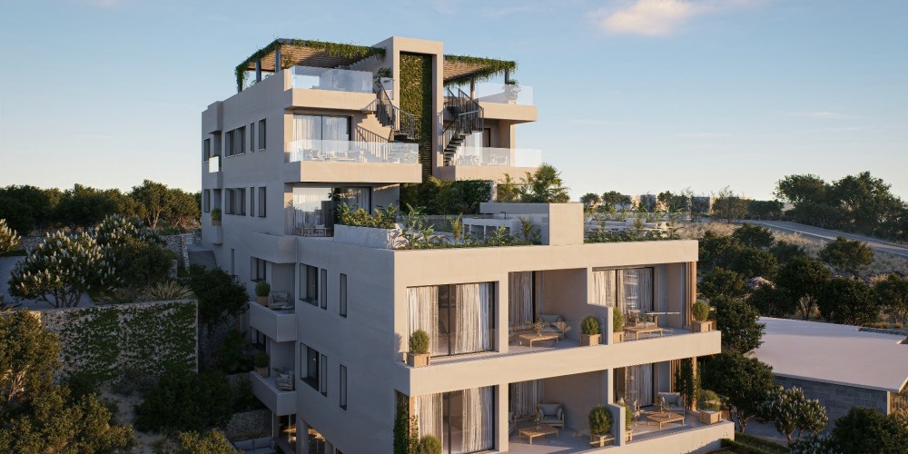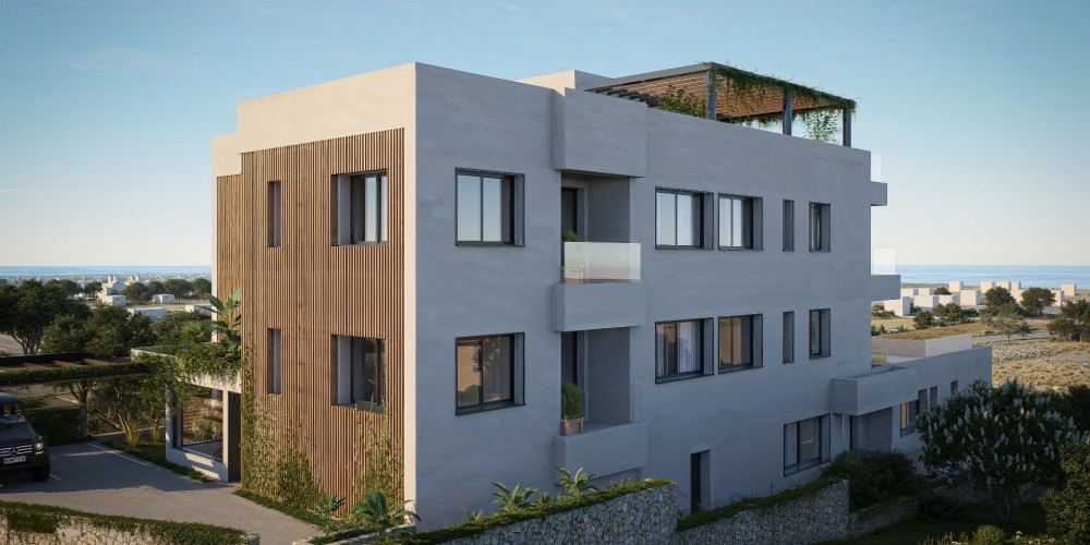 This boutique residential development is set in the green hills of Geroskipou, offering a peaceful living environment with views of the sea. The project consists of just twelve one- and two-bedroom apartments, creating an intimate atmosphere that combines privacy with a modern residential setting.