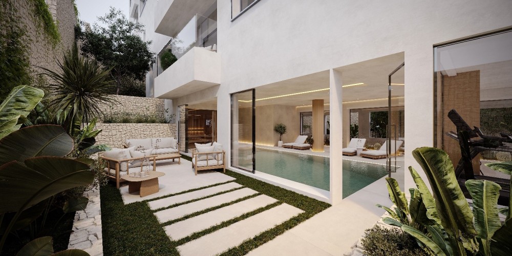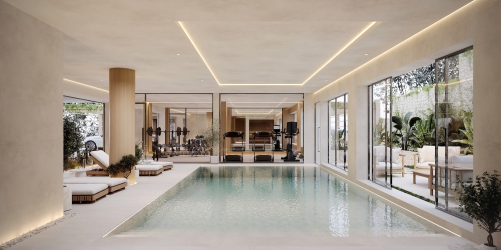 Designed to redefine everyday living, the development provides residents with access to indoor wellness facilities, including a heated swimming pool, gym, and sauna, all carefully integrated to support relaxation and comfort. The surrounding landscaped areas bring nature closer, enhancing the overall living experience.