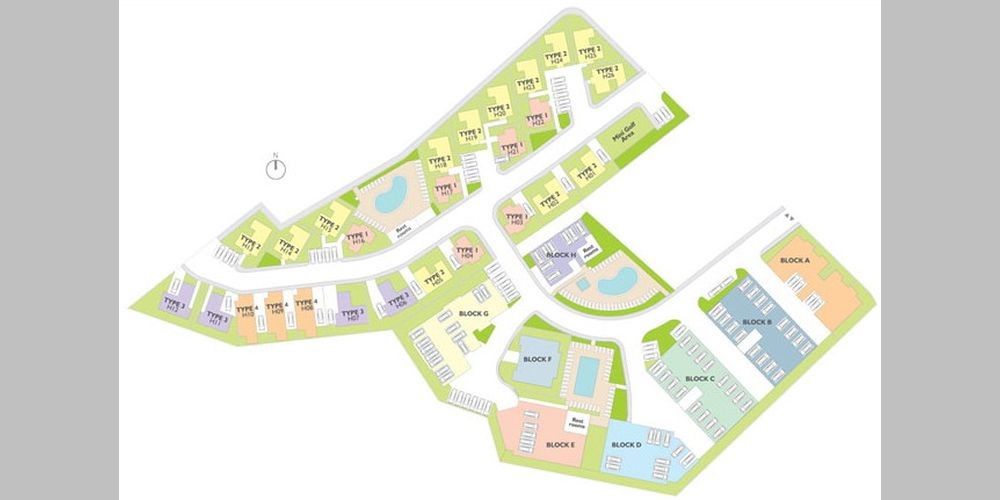 There are three swimming pools for adults and one for kids within the complex area. Nearby public beach beds and umbrellas are provided for. Residents may also play golf on a mini-field for golf, practice in a fitness gym or jog along 360 m long inner tracks.